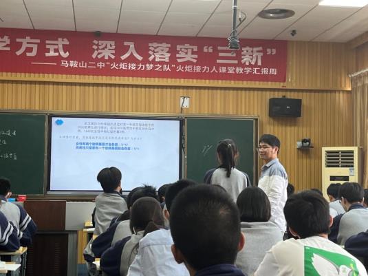 為全麵深入落實新課(kè)程、新課標、新教材的目標和要求(qiú),切實推進新時代普通高中育人方式的轉變,2024年5月14日上午,馬鞍山二中黨建品牌“火炬接力夢之隊”之火炬(jù)接力人課(kè)堂教學“生物(wù)學學科”匯報課順利開展。來自高二年(nián)級組的王思(sī)惠老師和高一年級組的韓(hán)靖老師向91视频网站展示了兩(liǎng)節(jiē)激(jī)發學(xué)生思維能力的(de)匯報(bào)課。馬鞍山二中副校長孫(sūn)濱,馬鞍山市生物教研員禹萍,以及全市(shì)各(gè)中學(xué)生物學教師到場聽(tīng)課並參與評課(kè)。
