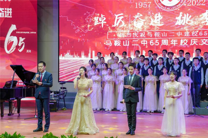 為(wéi)熱烈慶祝中國共產黨第二十次全國代表大會勝利召開,慶祝馬鞍山(shān)市第(dì)二中(zhōng)學(xué)建校65周年,2022年12月12日下午4點,馬鞍山市第二中學65周年校(xiào)慶文藝演(yǎn)出在二中本部綜合樓報告廳隆重舉行。出席演出活動的有二中集(jí)團化辦學聯盟各(gè)校的領導:二中黨委書記、校(xiào)長王玉平,工會主席畢小紅,副校(xiào)長慶曉,二中鄭蒲港分校校長伍玉魁(kuí),二中博望分校校長孫濱,二中外國語分校副(fù)校長王宏。在現場觀看演(yǎn)出的還有(yǒu)部分在(zài)馬(mǎ)校友(yǒu)代表,各聯盟校部分在職教師,退休教師代表,以及各年級、各班級的部分學生代表。二中全體師生通過(guò)同步在線直播觀看了演出。