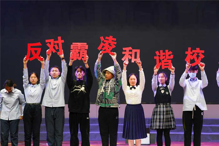 本次演(yǎn)出由(yóu)二中英語教師計(jì)珂、二(èr)中(zhōng)鄭蒲港分校語(yǔ)文(wén)教師周(zhōu)超、102班學生賴靖宇和114班學生謝憶晗主持。