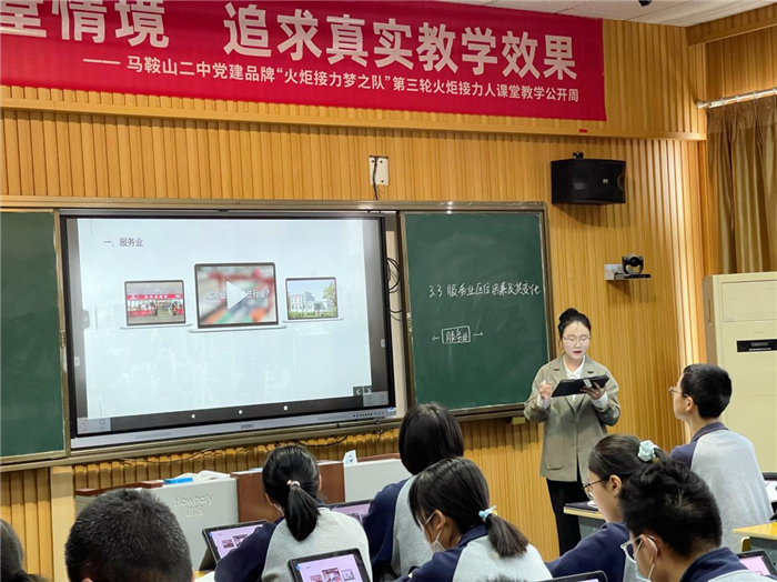 5月12日上午,馬(mǎ)鞍山二中第三屆“火炬接力夢之隊(duì)”課堂教學地理學科示範課順利開展(zhǎn)。來自(zì)本部的聶夢醒老師和(hé)博(bó)望分校的汪鵬飛老師,向91视频网站展示了兩節落實核心素(sù)養的生動地理課堂。市地理(lǐ)教研員張克雲老(lǎo)師、馬鞍山二中副校長褚亞飛,以及全市高中地理教師到場聽課並參與評課。