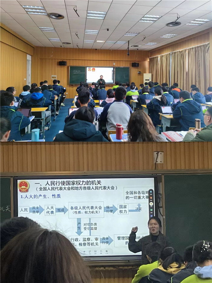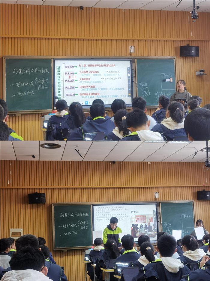 謝婷婷老師將教學內容與信息技術有機融合,實(shí)現交流互動立體化、資源推送多元化。通過(guò)課前任務展示、模擬人大(dà)代表等活動,發揮學生的主體性(xìng),課堂有聲有色,讓教學從“指尖”直抵“心間”。