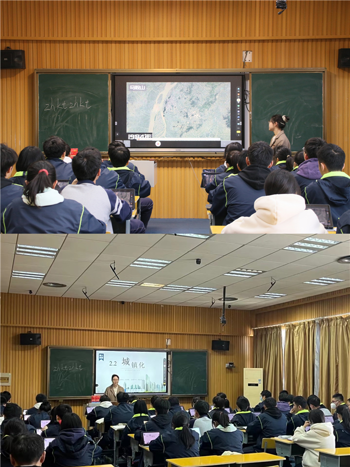 聶夢醒老師的課題為《城鎮化》,她以學(xué)生熟悉的馬鞍山市為例(lì),通過探究活動,理解城鎮化的表現(xiàn)、意義及世界城鎮化進程的一般規律。利用暢言係統進行師生互動,潛移默化培養學生“地理實踐力、綜合思維”等核心素養。