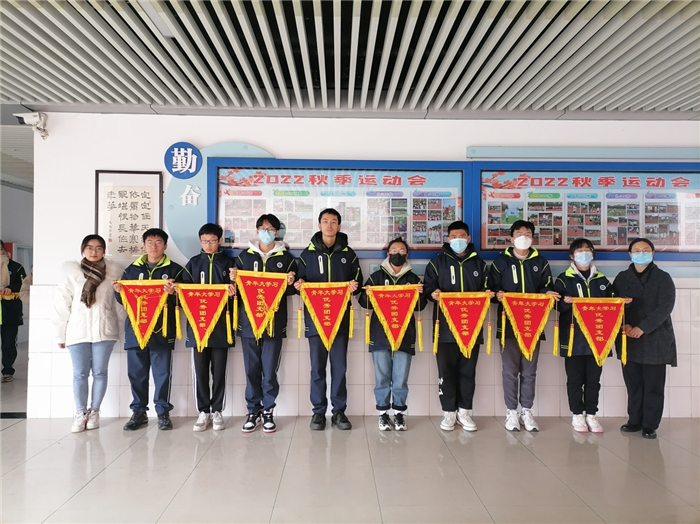 2022年12月5日升旗儀式上,學校(xiào)團委對2022-2023學年第一學期上半學期(qī)各團支部參與“青(qīng)年大學習”(2022第19期至第25期)的學(xué)習情況進行(háng)了評比,對表現突出的團支部進行了表彰,並邀請學校高一年級分管校領導畢小紅主席、高二年級分管校領導儲亞飛副校(xiào)長、高三年級分管校領導慶曉副校長為獲獎團支部頒發流動紅旗。