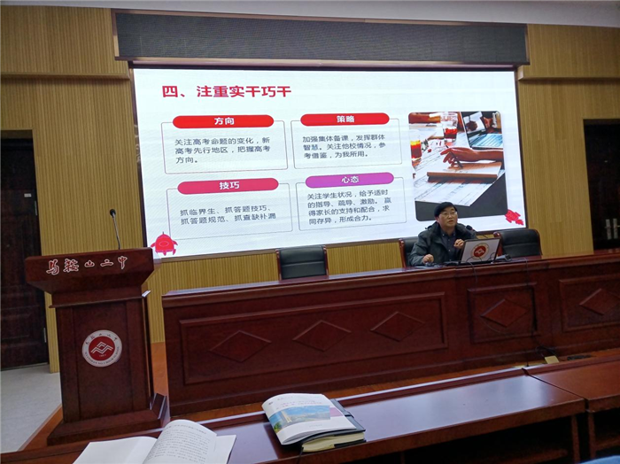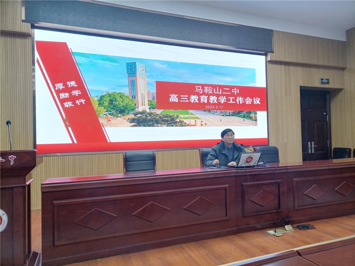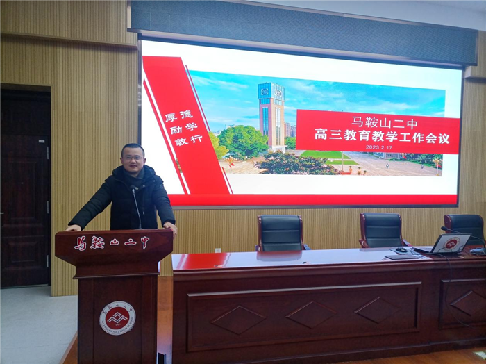 為實現衝刺階段提質增效,馬(mǎ)鞍山二中(zhōng)高三(sān)年級教育教學工作會議於2023年2月17日下午在二樓報告廳順利召開。教導處主任葉張平與(yǔ)會指導,高三年級全體教師參(cān)會。會議由高三年(nián)級部主任孫誌農(nóng)主持。