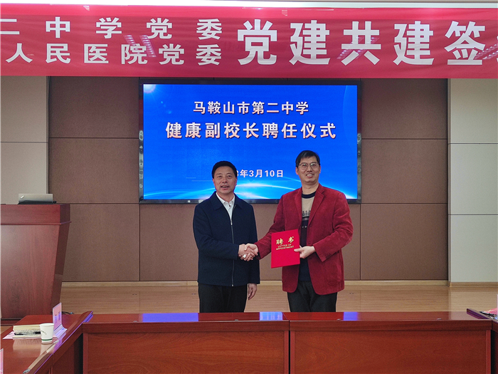 簽約儀式後還舉行了市第二中學健康副(fù)校長聘任儀式(shì)。