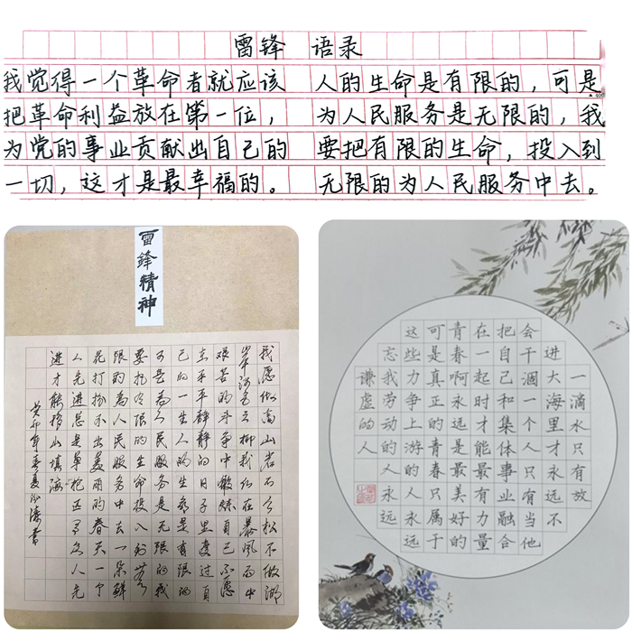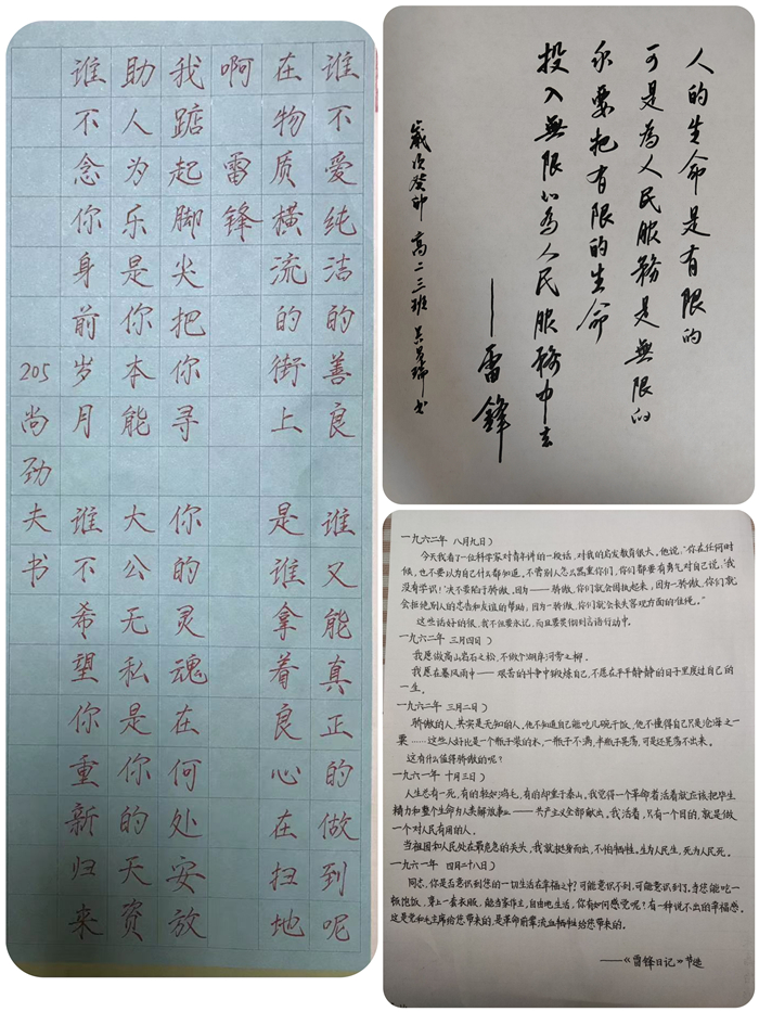有的團支(zhī)部組織同(tóng)學們齊唱歌曲《學習雷鋒好榜樣》,同學們用清澈、動聽的歌聲,抒發了對雷鋒精神的敬仰,表達了自己向雷鋒學習、爭當(dāng)新時代好榜樣(yàng)的決心和信念。通過(guò)唱響學習雷(léi)鋒的主旋律,用美(měi)育浸(jìn)潤心靈,傳承雷鋒精神。