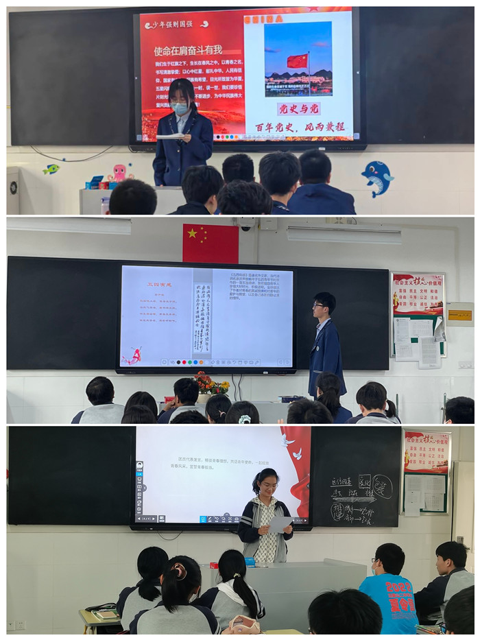 各班級團支部緊緊圍繞團日活動主題,創新開展特色鮮明、形式多樣的學習(xí)交流活動(dòng)。通過團史宣講、觀看主題宣傳片、知識競答等活動,引導同學們重溫中國共產黨和(hé)中國共青團的光榮曆程,進一步弘揚和傳承五(wǔ)四精神,穿越時光,向榜樣致敬。