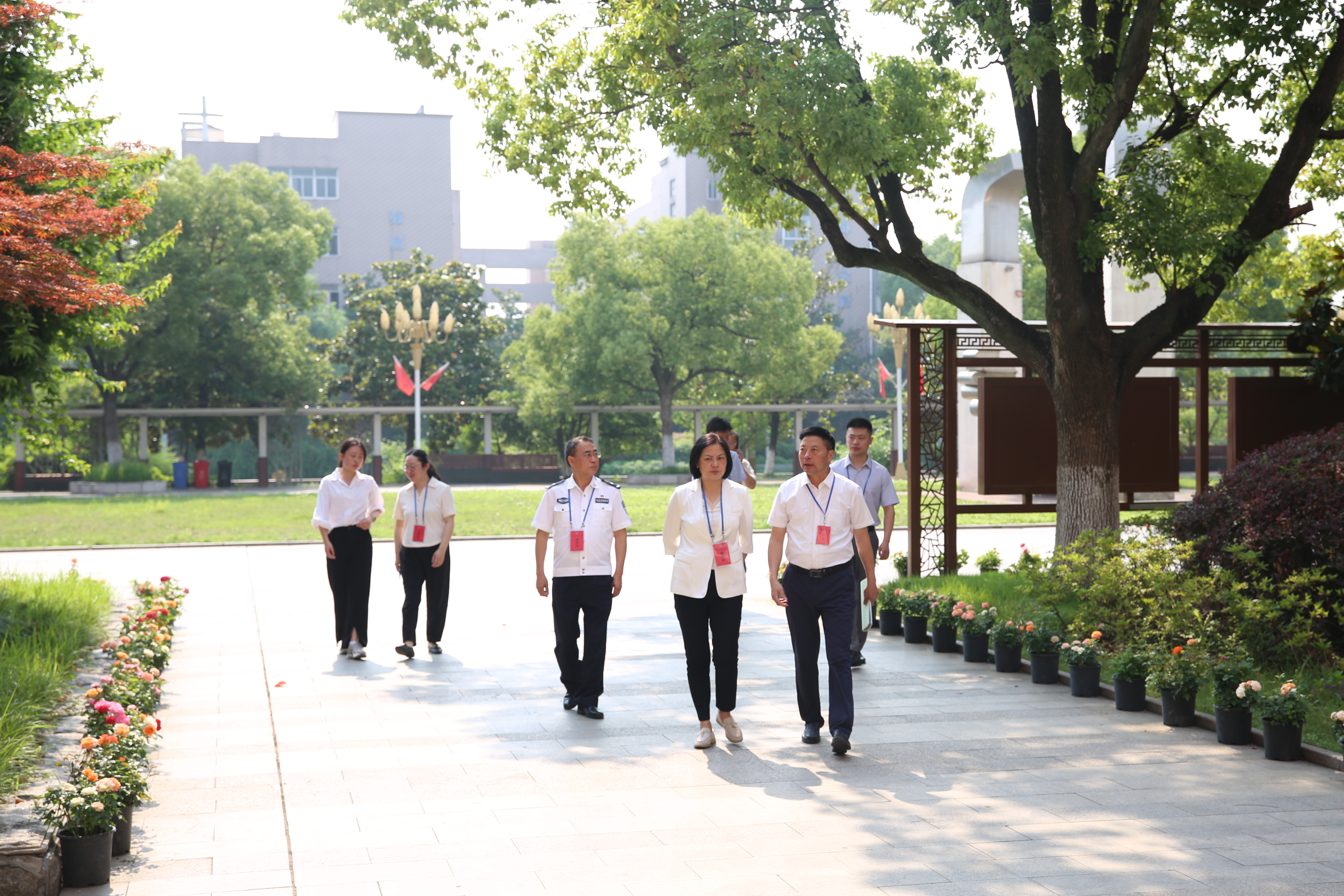 闞青鶴一行認真查看了考點入口的安檢設(shè)施、考生通道、視頻監控係統等情況,現場聽取了校(xiào)黨委書記、校長王玉平關於學校全力做好中考(kǎo)考務工作的匯(huì)報。