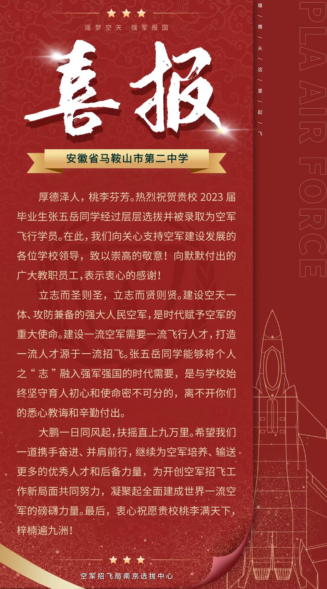 空軍招飛局南京選拔中心發來喜(xǐ)報
