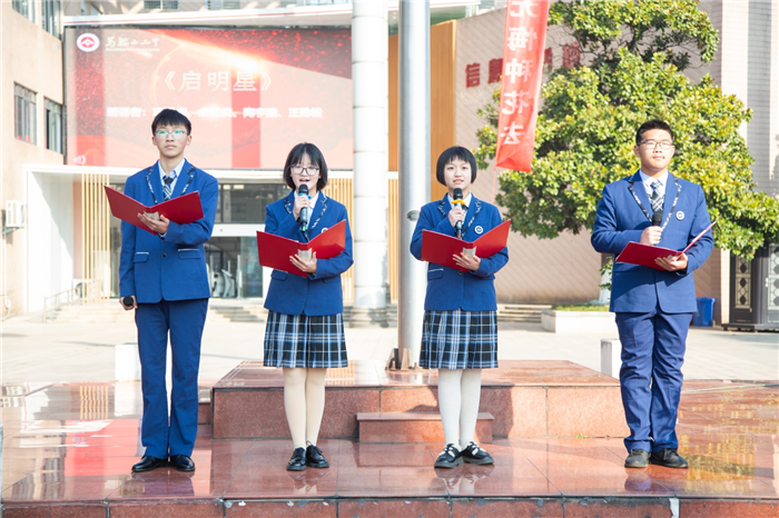 項洪睿、餘佳儀、陶宇(yǔ)浩、王勁鬆等四位同學用(yòng)一首詩朗誦(sòng)《啟明星》,代(dài)表全體(tǐ)同學向所有辛勤耕(gēng)耘、誨人不倦的老師們致以(yǐ)崇高的敬意和由衷的愛戴。