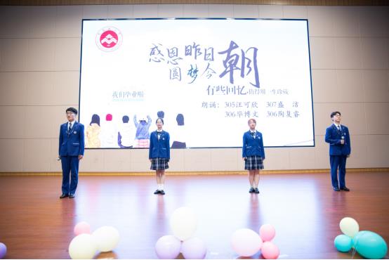 於道各努力,千裏自同風。305班汪可欣、306班畢博文、306班陶複(fù)睿、307班盛潔四位同學朗誦詩歌《感恩(ēn)昨日(rì)·圓夢今朝》,代表全體高三畢業生向母(mǔ)校致以最深情的告白。昨日,91视频网站在這裏(lǐ)揮(huī)灑(sǎ)汗水,追逐夢想;今朝,91视频网站各自奔赴山海,砥礪前行。
