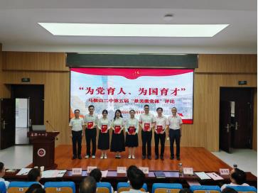 一個支部就是一座堡壘(lěi),一(yī)名黨員就是一麵旗幟(zhì)。在推動馬鞍(ān)山(shān)二中高質量發展的生動實踐中,湧現出了一大批優秀個人和先進集體。大會第二篇章《示(shì)範》,校黨委委(wěi)員、副校長褚亞飛同誌宣讀(dú)了《表彰通報》,第三黨支部榮獲馬鞍山市先進基層黨組織稱號。第四黨支部榮獲馬鞍(ān)山市教育(yù)係統先進基層黨組織稱號,徐浩同誌榮(róng)獲馬鞍山市教育係統優秀黨務(wù)工作者稱號,盧大亮、張致祥、高瑩、胡金蓉、孫影芝、章亮、周奕忻、張傑等8名同(tóng)誌(zhì)榮(róng)獲馬鞍山(shān)市教育係統優秀黨員稱號。陳馨、章雯、鍾雨婷、石軍、韓彥、楊珵(tǐng)、施瑋、汪(wāng)白玲、趙博文、孔德俊、張雯、金紅藝、劉建鐸、臧月(yuè)鏡等14名同誌(zhì)榮獲馬鞍(ān)山二中優秀黨員稱(chēng)號。校領導為“兩優(yōu)一(yī)先”代表頒獎(jiǎng)。