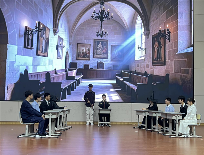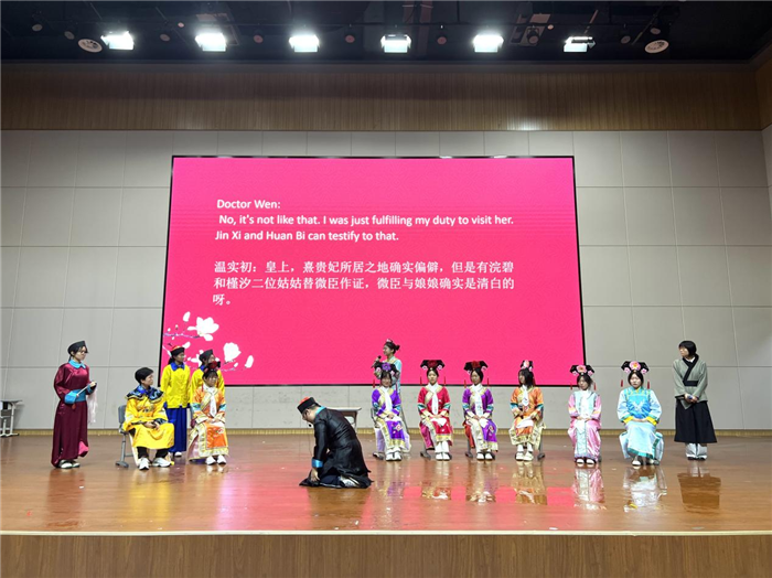 高二年級21個班級為現場觀眾呈現(xiàn)了(le)一場(chǎng)又一場的視聽盛宴。參賽劇目(mù)題材多元,既有對《頭腦特工隊》等經典電影的精彩呈(chéng)現,也有對《項鏈》等文學名著的生(shēng)動演繹,更不乏將《神筆馬良》等傳統故事的匠心再現。舞(wǔ)台上,同學(xué)們化(huà)身專業演員(yuán),以純正的英語發音(yīn)、細膩(nì)的情感表達和極具張力(lì)的舞台表現(xiàn)力將每(měi)個角色塑造得栩(xǔ)栩如生。同時,配合精心設計的服(fú)裝道具、巧妙編排的舞台調度,以及班級(jí)團隊的高度默契,演員(yuán)們帶領觀眾完(wán)成了一次次穿越時空(kōng)的藝(yì)術之旅。