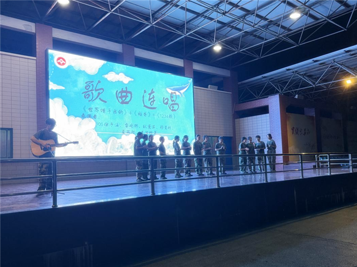 這場晚會裏,老師們也藏著 “驚喜(xǐ)彩蛋”。高一年級的鳳宇翔老師(shī)、張曉薇老師(shī)、張逸菲老師和實習老師塗希林(lín)組(zǔ)成 “教師樂隊”,帶來了《花海》。當熟悉的(de)旋律混著老師(shī)的和聲響起,台下(xià)同學紛紛起(qǐ)立跟唱,迷彩服(fú)與大(dà)地在燈光下交輝,掌聲與歌聲撞出了最動人的回(huí)響,整個操場(chǎng)都(dōu)成了青春的海洋。