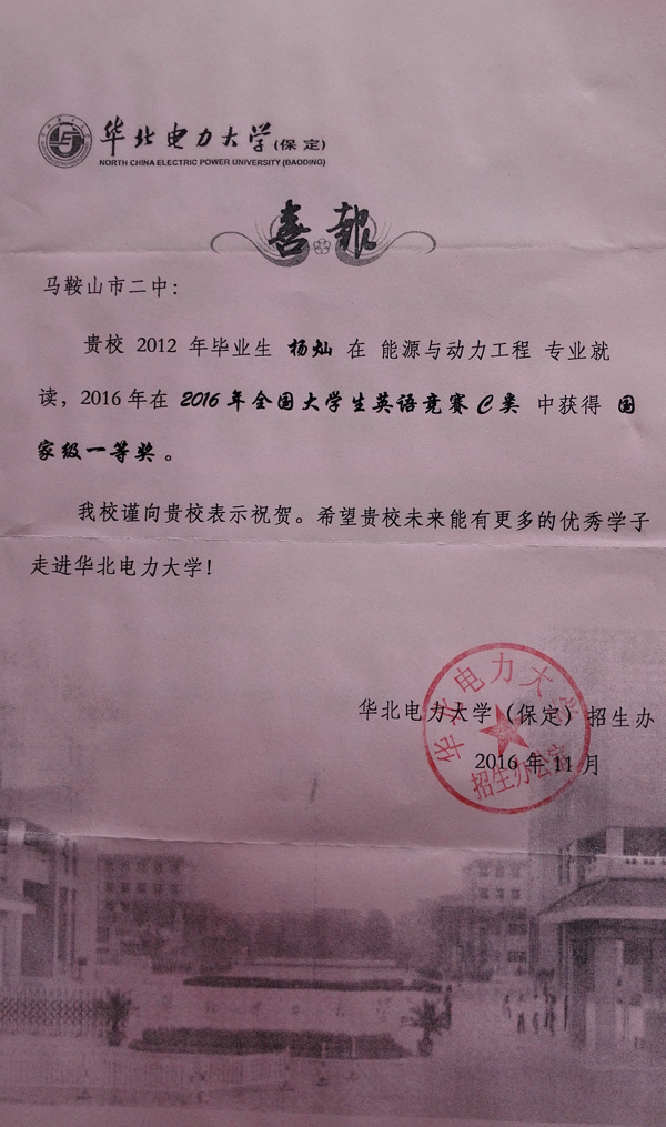 華北電力大學喜報