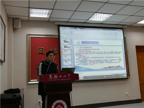 盛慶豐老師全麵細(xì)致(zhì)地分析了近年語文高考全國卷的命題特點,指出學生應當具備的各項語文能力(lì),進而對複習重(chóng)點和複習方法做了許多具體實用並具有藝術性的指導,讓聽講座的各位老師連連稱(chēng)讚,獲益匪淺。