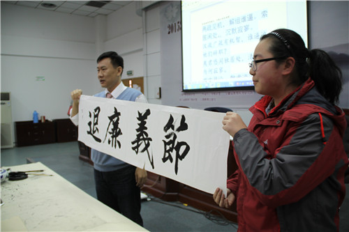 百川先生向同學們介紹了千字文的獨特魅力,溫情回故了自己學習書法(fǎ)的經(jīng)曆和多年書寫千字文給予自己的影響,鼓勵同學們學習也要持之以恒,終將收獲美好與成功(gōng)!百川先生的生動演講帶領學(xué)生們穿越時間,從而達到與古人心靈相通的契合境界。