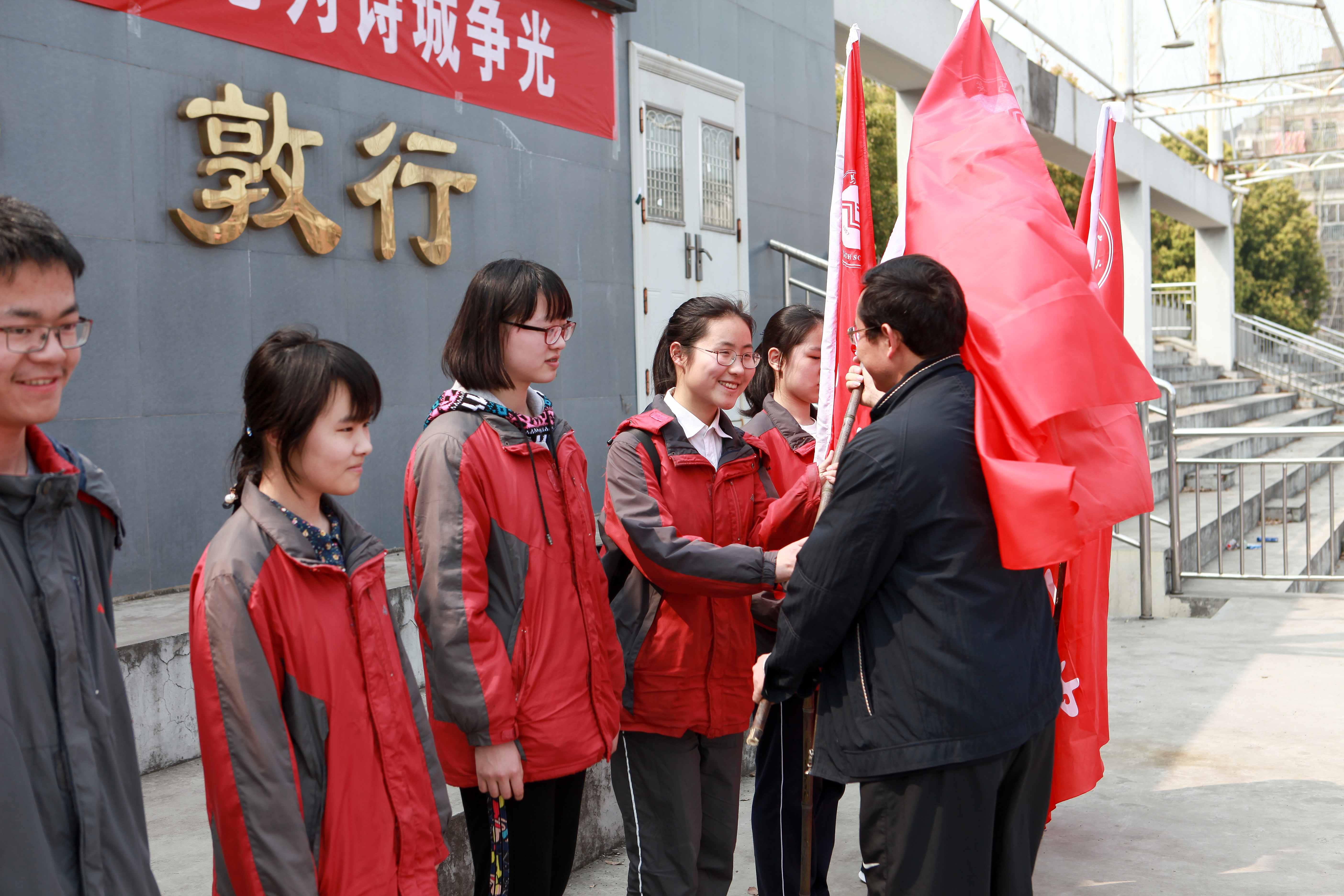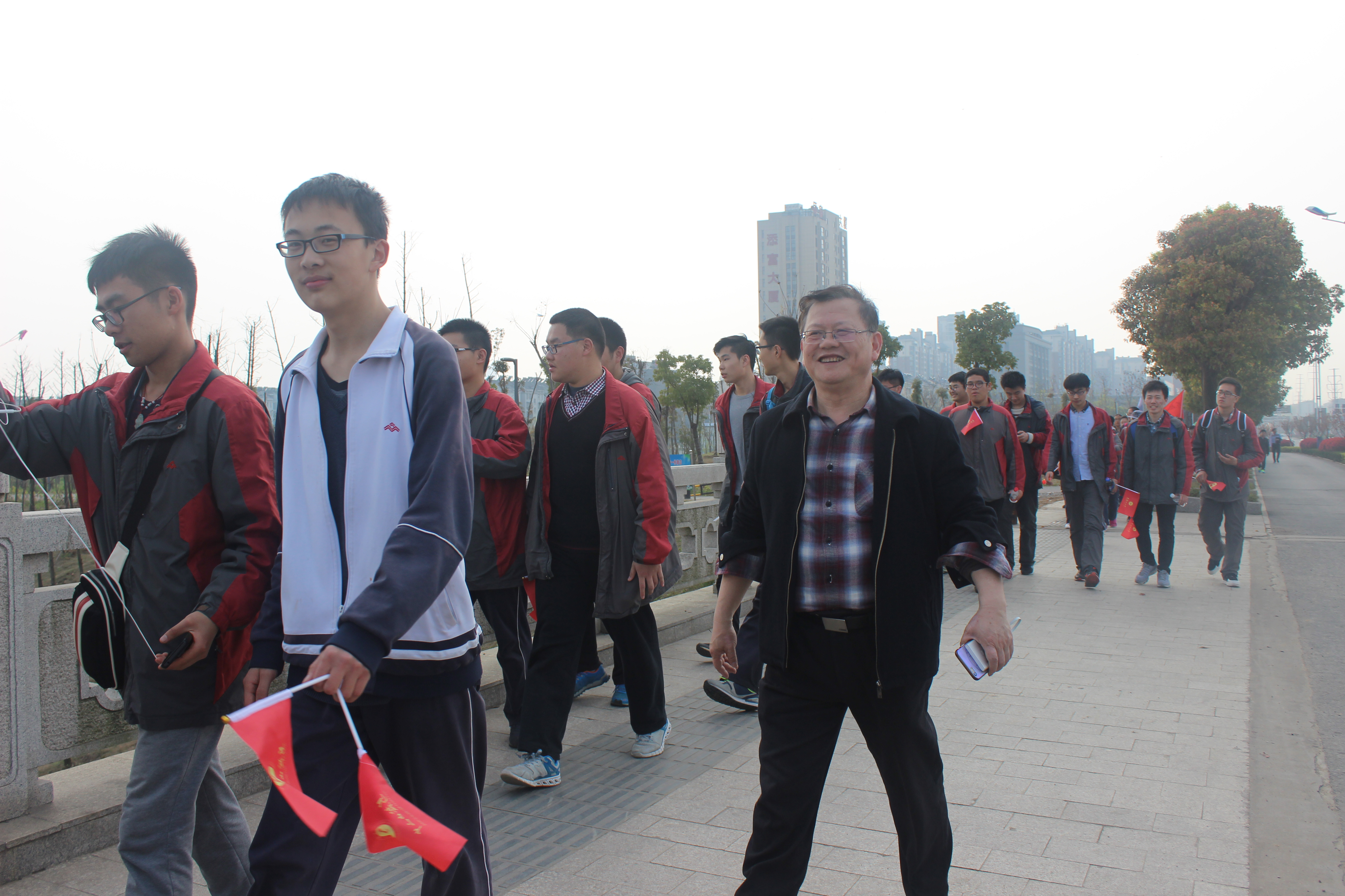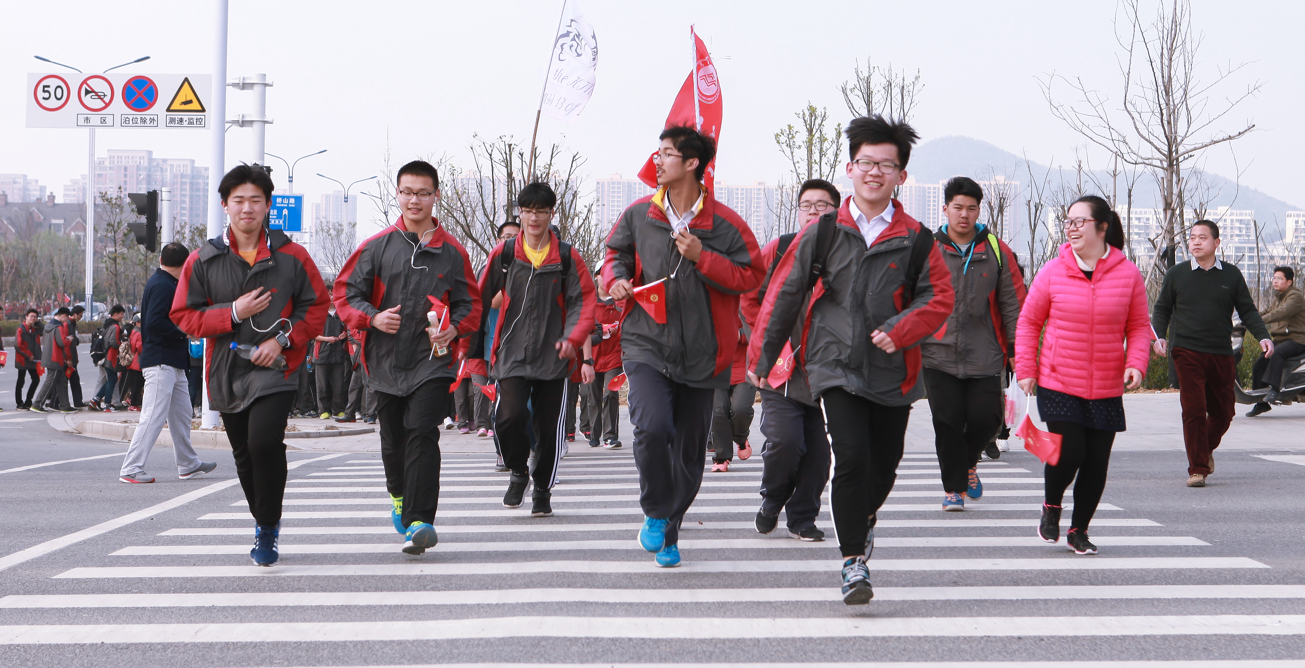 當天下午2點鍾,微風和煦,陽光正好。高二年級20個班級(jí),每個班級兩個學生一(yī)排,浩浩蕩蕩的隊伍出發了,前不見首後不見尾,隻能通過隨風飄揚的校旗、班旗,判斷每個班級所在的位置。