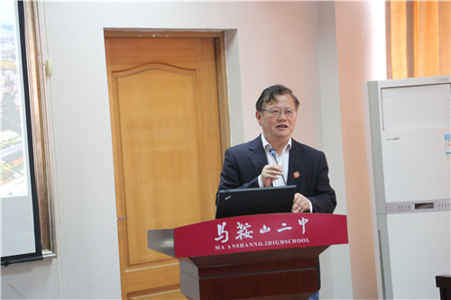 我(wǒ)校(xiào)郭惠宇校長與考察團(tuán)同仁們分(fèn)享了馬鞍山二中的辦學經驗。郭校長(zhǎng)將新的(de)中考招生政策對二中的影(yǐng)響(xiǎng)以及二中的應對(duì)之策作為重點內容詳細介紹,讓遠方來賓聽得興致盎然(rán),頻頻點頭。