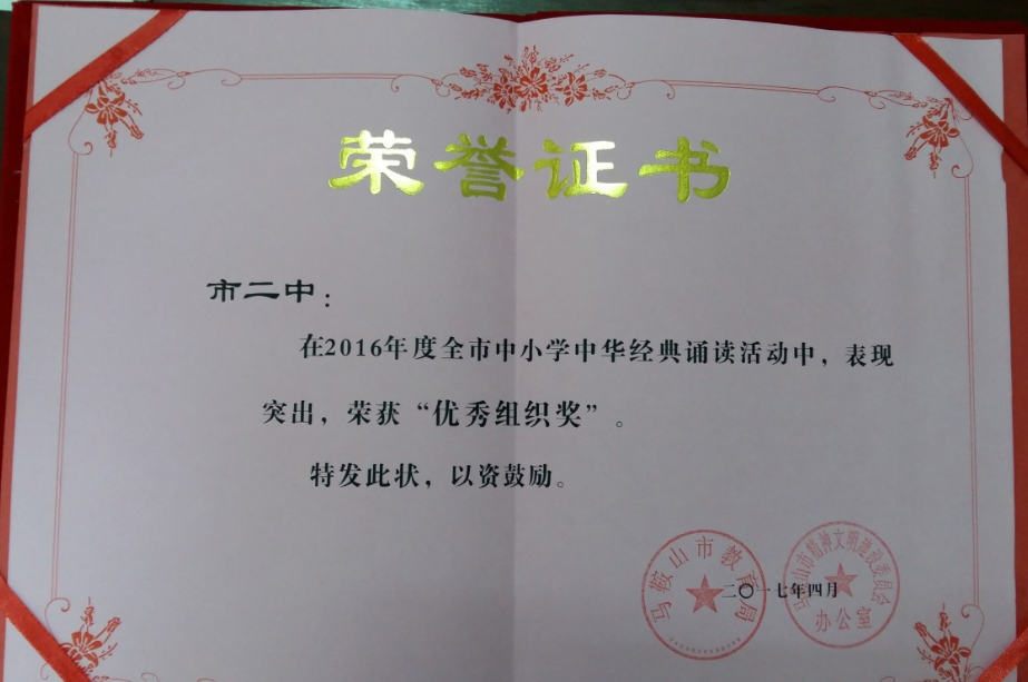 我校獲全市中小學中華經(jīng)典誦讀“優(yōu)秀組織(zhī)獎”