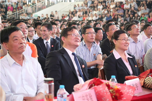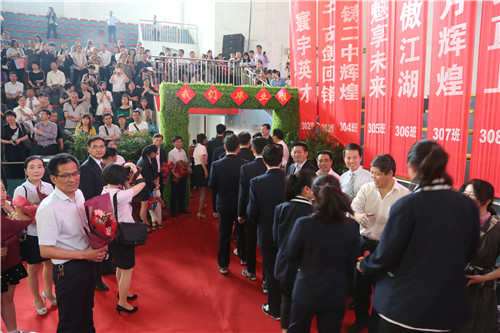 我校郭惠宇校(xiào)長、黨委聶曉霞書記、王玉平副校長、褚亞(yà)飛副校長、工會畢小紅主席、高三(sān)全體師生、家(jiā)長(zhǎng)代表共同見證了這一重要時刻。馬鞍山市三區三縣的多位初級中學領導作為特邀嘉賓來(lái)到(dào)現場(chǎng),為他們培養出的(de)優秀學子加油鼓勁。