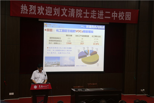 劉院(yuàn)士的講座分為三個部分:環境危機與挑戰、環境監(jiān)測高技術、高技術需要人才。他從學(xué)生們關注的“霧霾天”“水汙染”“毒跑(pǎo)道”談起,全麵展示我國環境汙染現狀,深入剖析汙染原因,並結合(hé)自身研究成果,為同學們介紹了多種環境監測尖端技術。講座的最後,他對二中學子(zǐ)寄予(yǔ)殷切期望(wàng),希望他(tā)們(men)能努力求學,掌握領先(xiān)技術,為環境汙染治理工作做出貢獻。