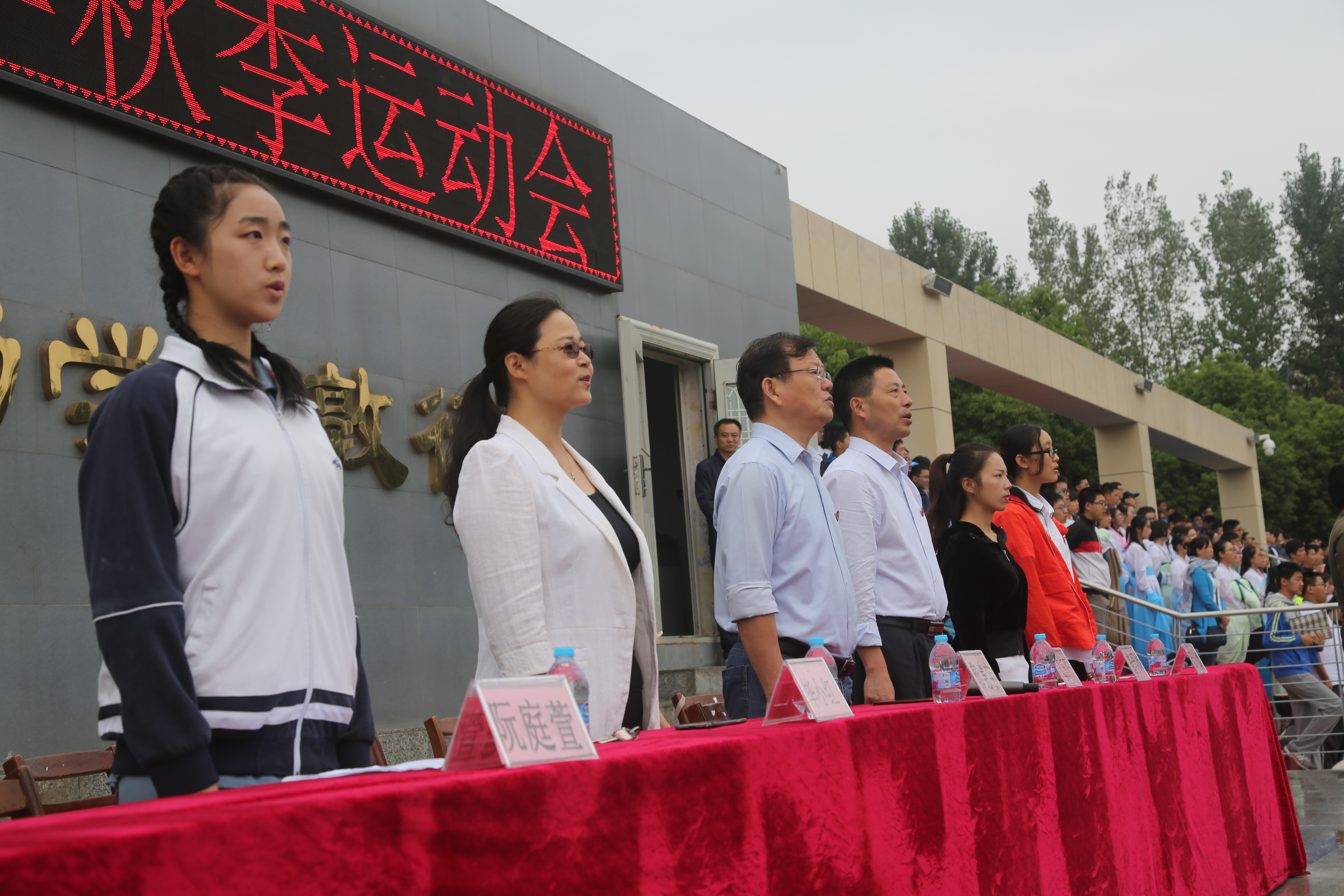 裁判員代表和運動員代表宣誓(shì)後,校長郭惠宇宣布運動會正式(shì)開始。各班體(tǐ)育(yù)健兒們迎著秋風,伴(bàn)著淡淡的桂花香,意氣風發地接受著同學和領導、老師們的檢閱。他們邁著整齊的步伐,以昂揚的姿態和必勝的決心迎(yíng)接未來三天的運動會比賽。