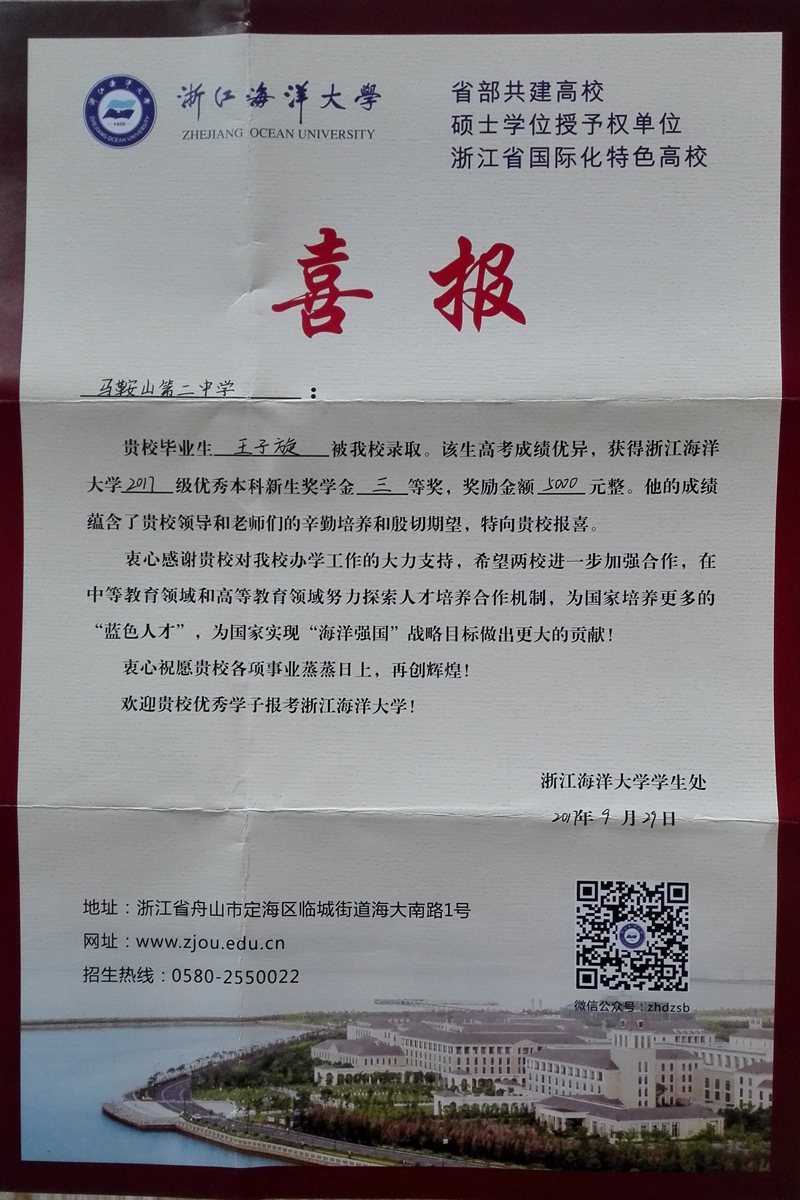 浙江海洋(yáng)大學喜報