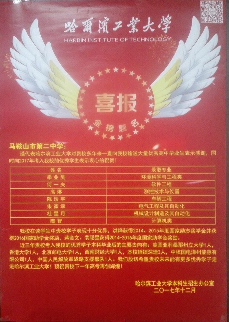 哈爾濱工業大(dà)學(xué)喜報