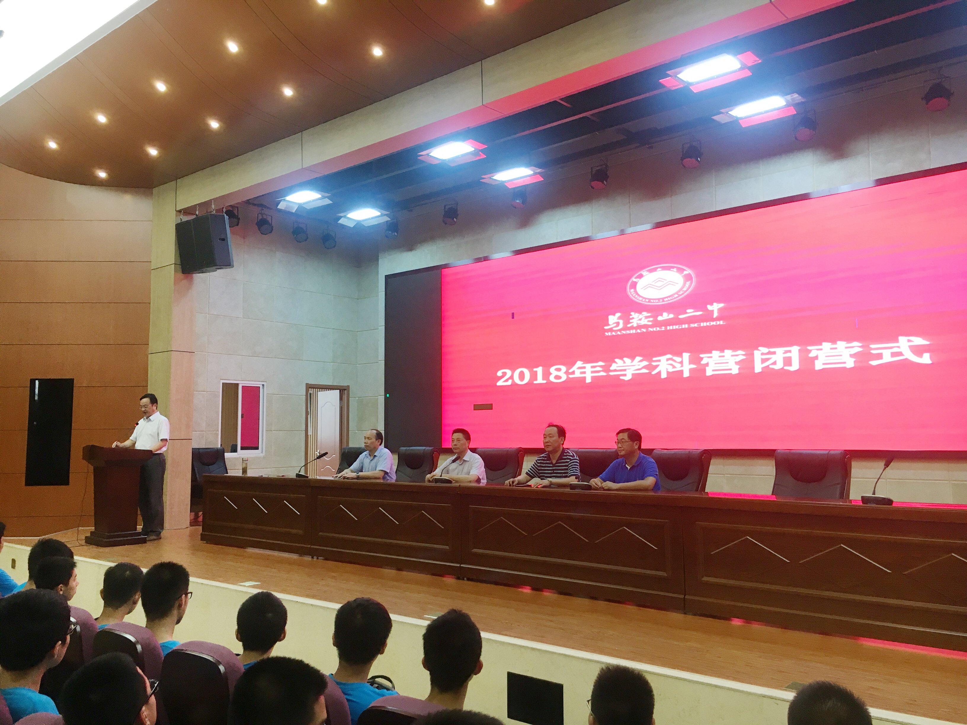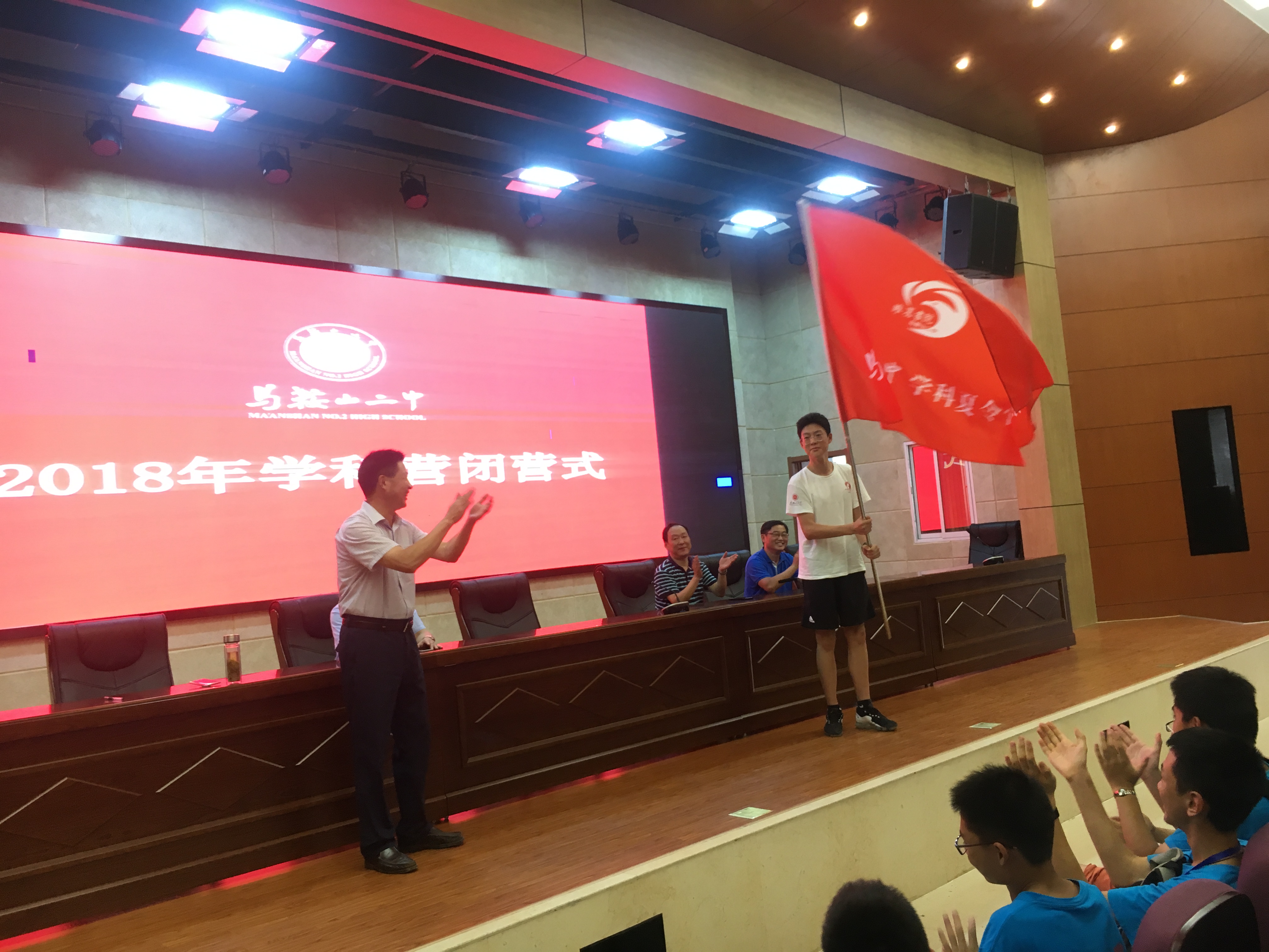 2018年8月4號下午四點半,學科夏令營閉營儀式在基地報告廳舉(jǔ)行。教導處喻全貴副主任主持會議。
