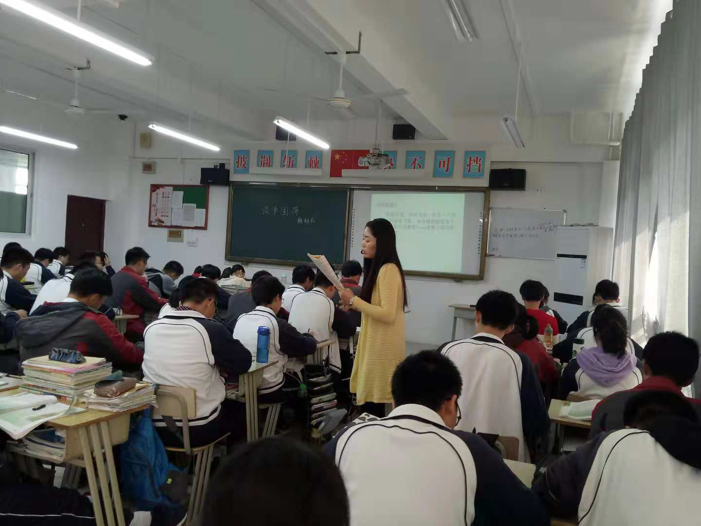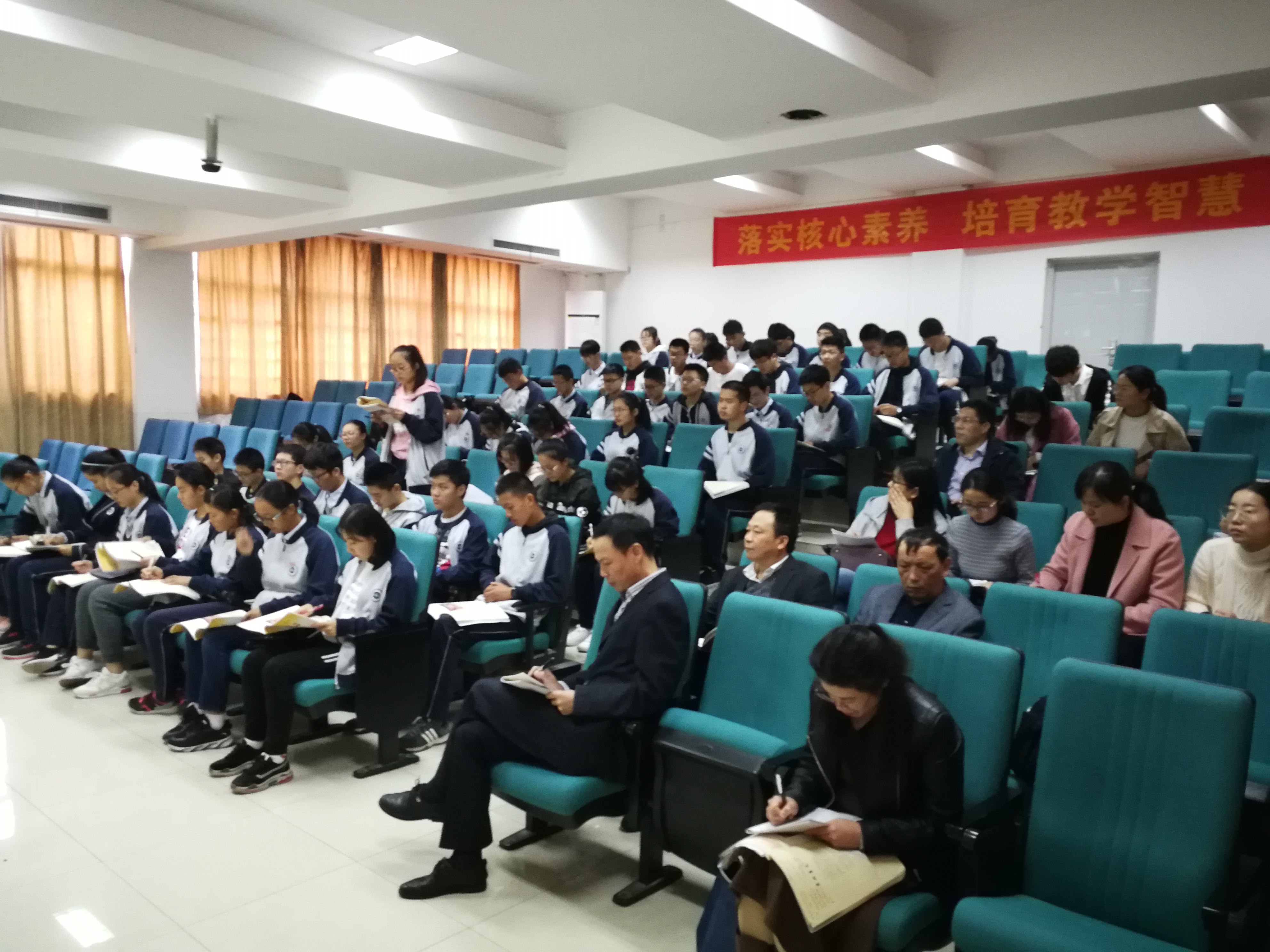 隨後,來訪的老師分(fèn)成兩批進班聽課。本次聽課由儲成俊和朱淩燕老師分(fèn)上一節課,語(yǔ)文(wén)組部分老師都參與了本次聽課過程。儲成俊老(lǎo)師執教的是《別了,不(bú)列顛尼亞》,儲老師的課堂教學厚重務實,備課充分,板書詳實(shí),十分注重(chóng)學生語文(wén)基本素養的提升,整節(jiē)課的氛圍活躍,並在一個個(gè)問題的(de)巧妙引導中完成了(le)教學目標的達成;朱(zhū)淩燕老師執教的是《談中國詩》,朱老師(shī)教態自然大方,對文本挖掘深入,語言(yán)清晰富有感(gǎn)染力,課堂節奏把握得當,關注細節,善於(yú)啟發(fā)和引導學生。會後兩校的聽課老師進行了簡單地交流,對兩節課都給予了較高的評價和中肯的(de)建議。