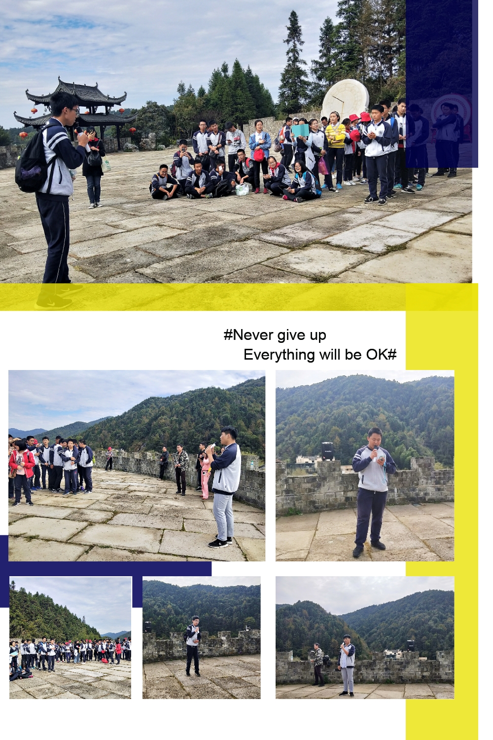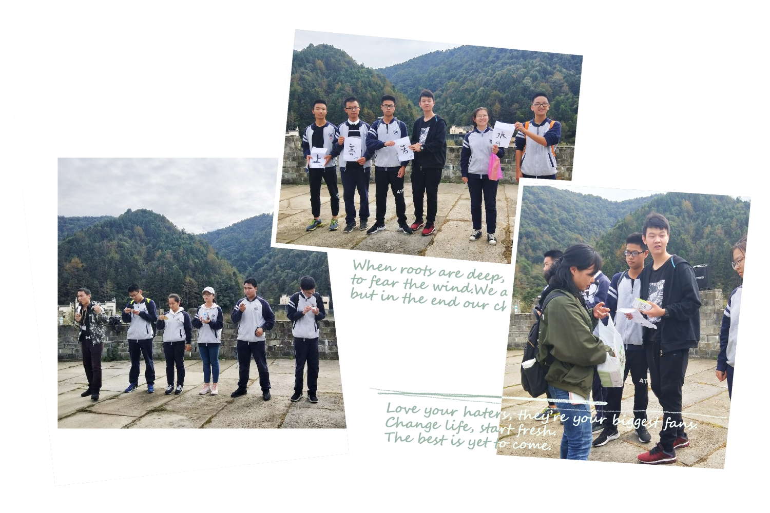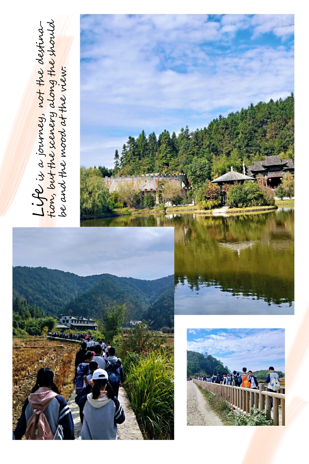 雖然路(lù)上稍有些顛簸,但同學們的熱情卻絲毫(háo)未減。一下車,映入眼簾的是遠處的高(gāo)山和用白雲點綴著(zhe)的湛藍(lán)色天空(kōng)。經過短暫的休息,大家排著隊進入了瑤灣景區。踏著石(shí)板和鵝卵石鋪成的小路,兩旁是(shì)清綠的淺潭。腳下的(de)步子未停歇,路也在向前延伸。一(yī)路上,有賣各種商品的小店,有橫跨湖麵的小橋,有種滿花兒的平地,有掛著藤(téng)蔓(màn)的長廊,有(yǒu)布滿荷葉的池塘,還有充滿著道教氣息的亭子。遊覽完(wán)瑤灣之景,導遊帶著同(tóng)學們(men)來到了一個空曠的場地準備進行才藝表演,各班進行了有趣的才藝比拚,同學們(men)毫(háo)不示弱,紛(fēn)紛(fēn)拿出自(zì)己的獨門絕技(jì)。