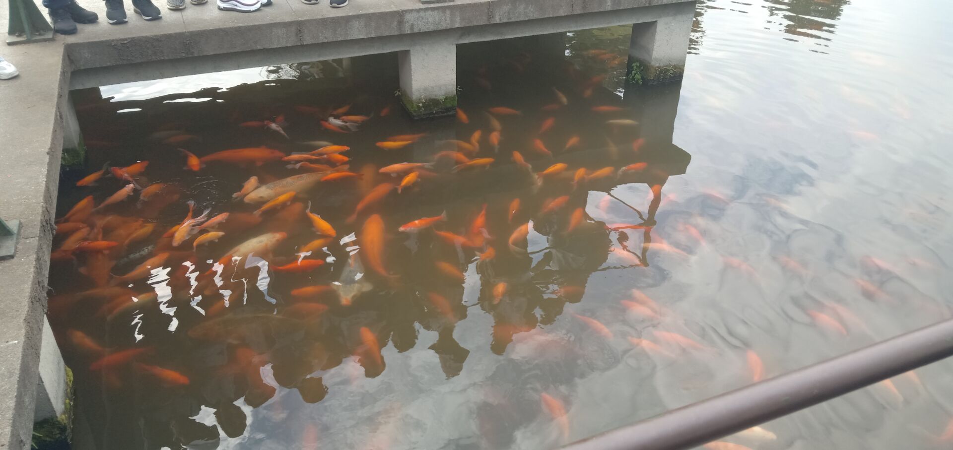 穿過(guò)曲(qǔ)曲折折的小道,花港觀魚(yú)從一片綠蔭(yīn)掩映中逐漸顯露出它的(de)全(quán)貌,兩(liǎng)岸垂柳拂風,紅楓點染,即便深秋之際,西湖也依舊是以為極具魅力的色彩大師。最奪人眼(yǎn)球的莫過於繽(bīn)紛絢麗的魚群了,紅黃(huáng)黑的花色交錯讓人眼(yǎn)花繚亂,橋頭瞬間(jiān)摩肩接踵起來。觀魚最愜意的還是投喂魚食,大片的魚群處並不值得(dé)留戀,找一池清淨之(zhī)水,灑下些許麵包屑(xiè),餅幹碎(suì),魚群便聞(wén)香而來(lái)的體驗方為最佳。正如清朝文人許承祖所寫:“水(shuǐ)上新紅漾碧虛,盧園(yuán)景物盡邱墟。就中隻覺遊魚(yú)樂,我亦忘機樂似(sì)魚。”此時,正是同學們樂不思蜀的時候。