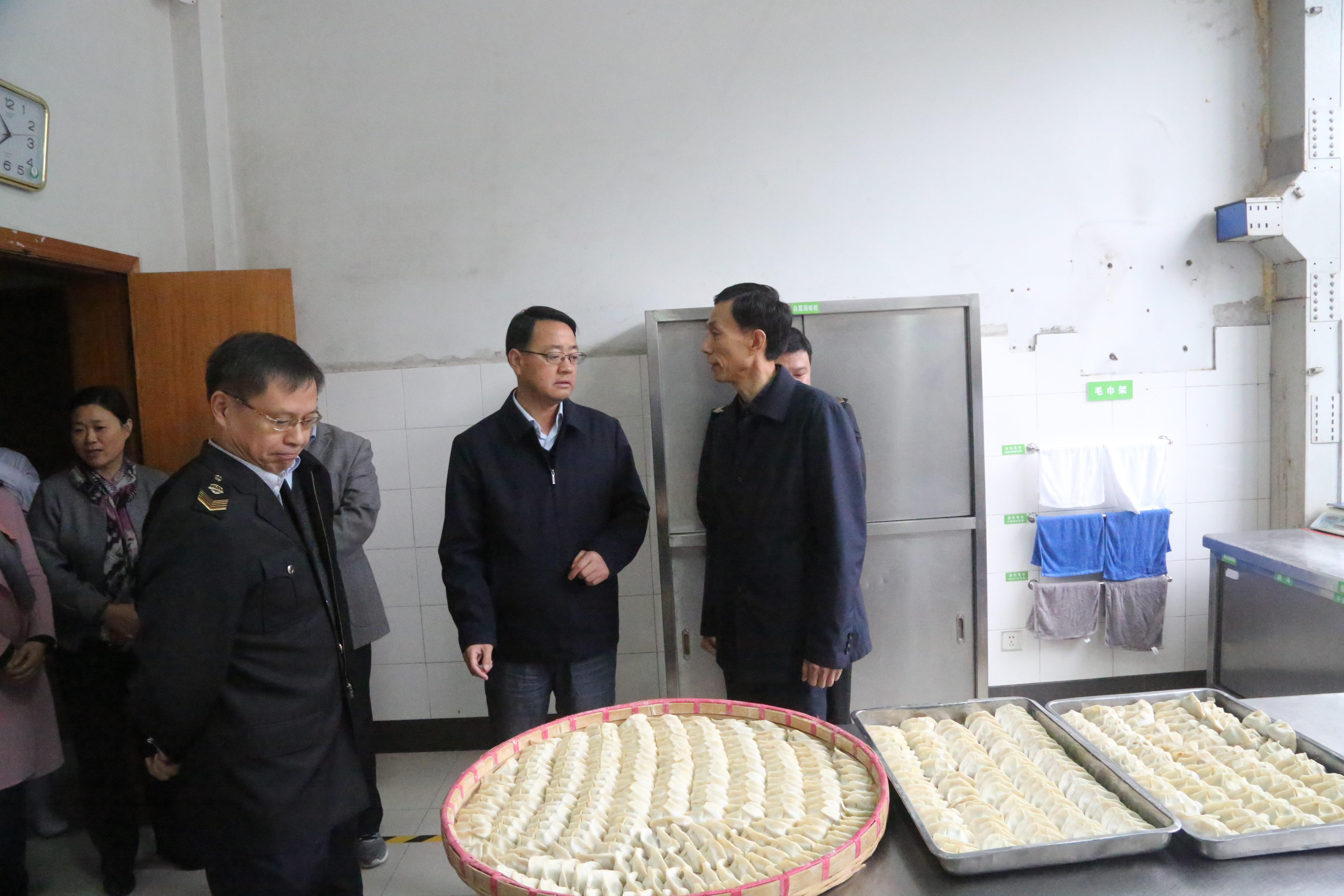 20181115日上午,馬鞍(ān)山市政府副(fù)市長楊善斌來到我(wǒ)校檢查指導(dǎo)食品衛生安全工作。市政府副秘書長劉觀林、市食(shí)品藥品監督局(jú)局(jú)長(zhǎng)何俊、市教育局副局長竇天明、花山區(qū)副區長餘大麗、馬鞍山二中校長郭惠宇、黨委書記聶(niè)曉霞陪同檢查。