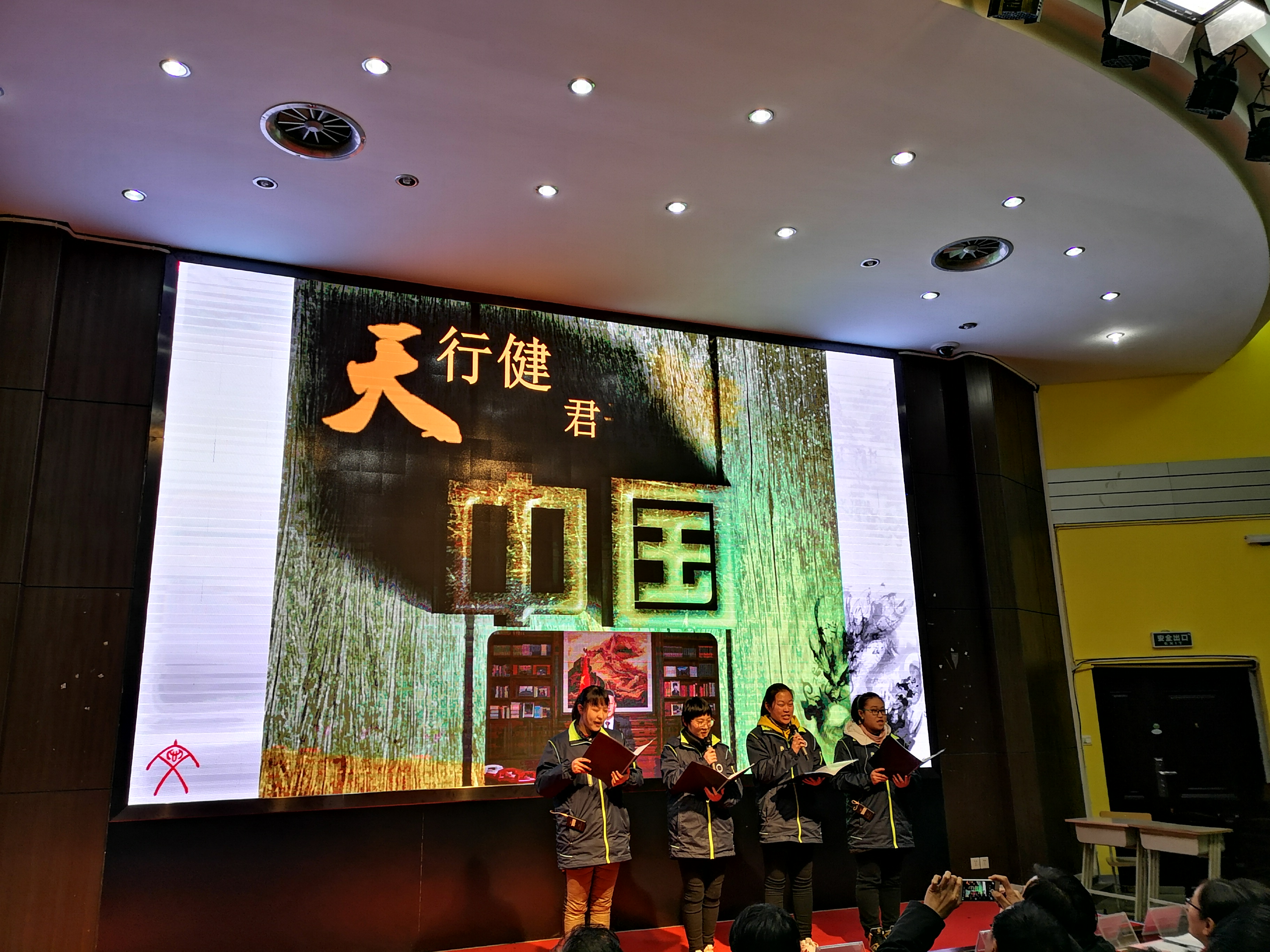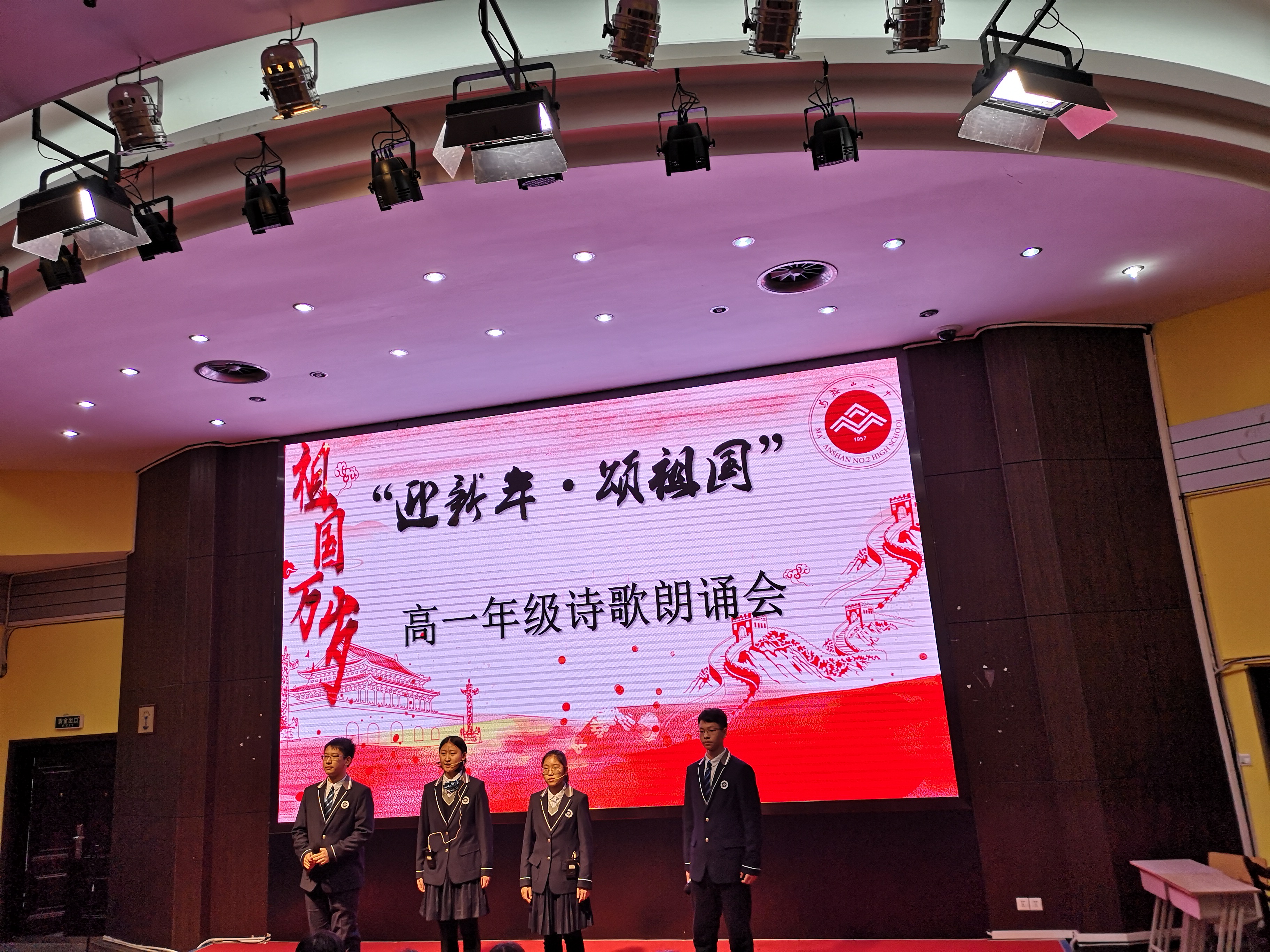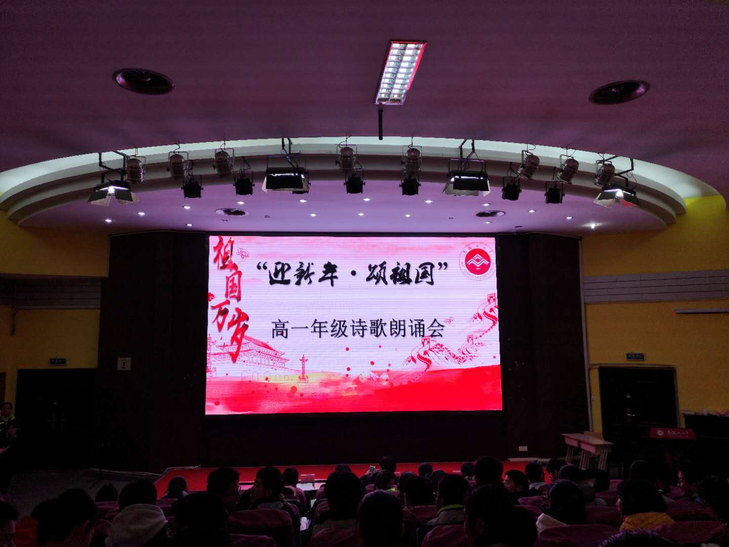 為了進一步提(tí)高(gāo)學生核心素養(yǎng),營造書香校(xiào)園,迎接祖國(guó)七十華誕的到來(lái),201914日下午,我校高一語文備課組在校圖書館學術報告廳舉辦了(le)以(yǐ)“迎新年•頌祖國”為主題的詩歌(gē)朗誦比(bǐ)賽。