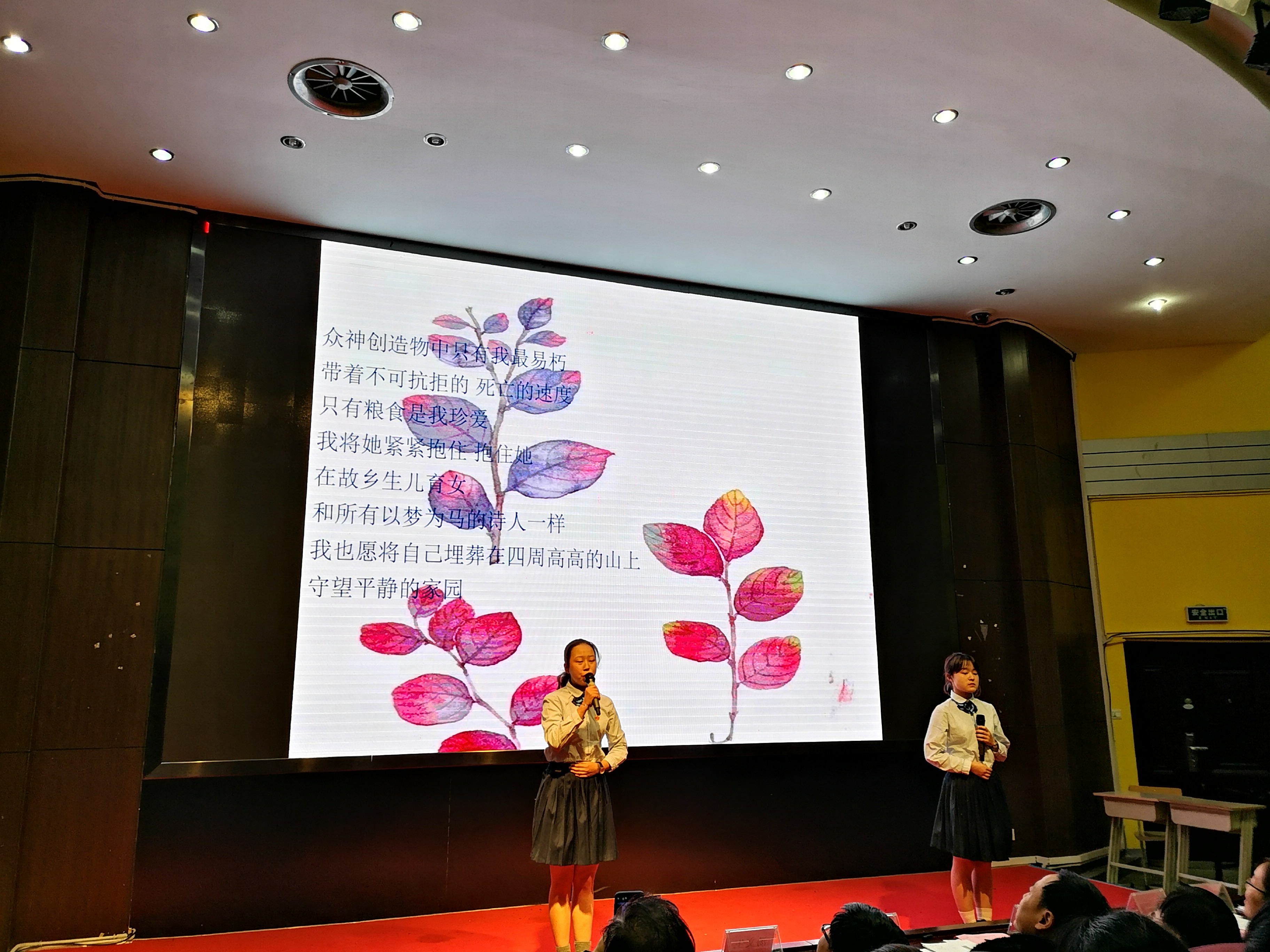 本次詩歌朗誦會既是對課內學習的延伸,又是對課(kè)外閱讀的總結,也展現了二中學子對祖國的拳拳之心。