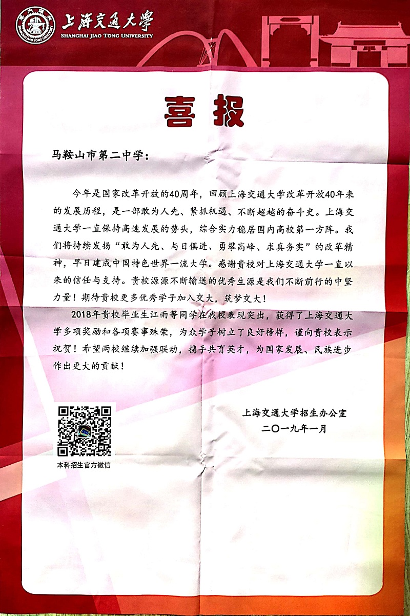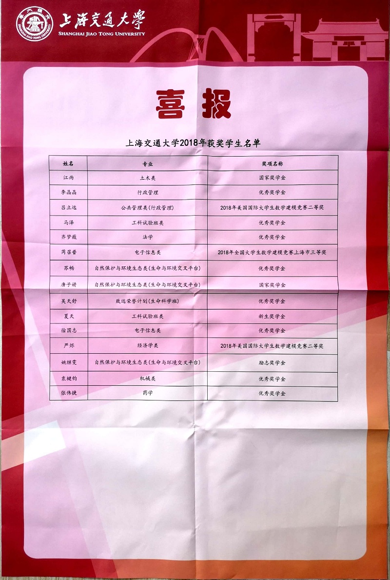 上海交通大學喜報