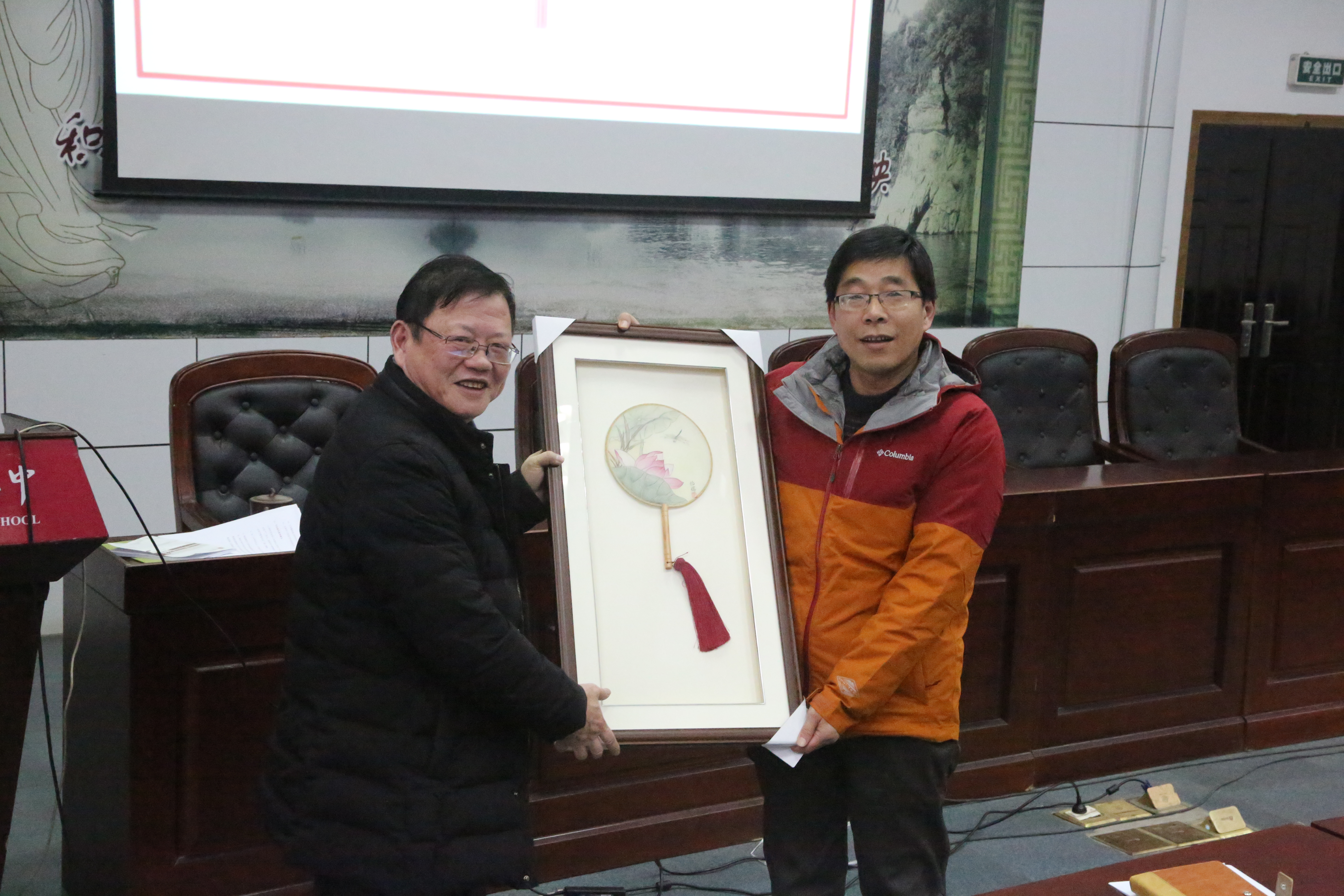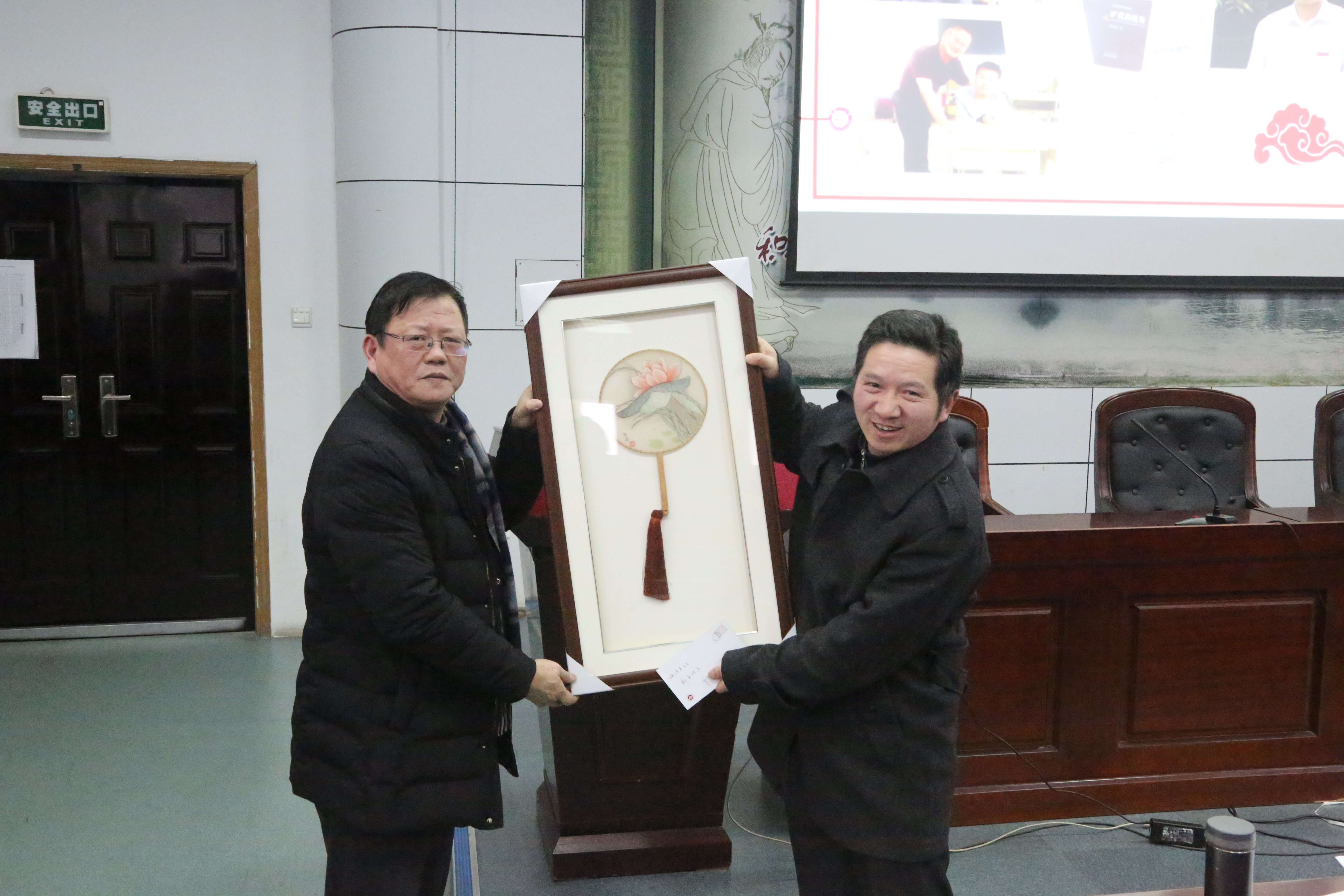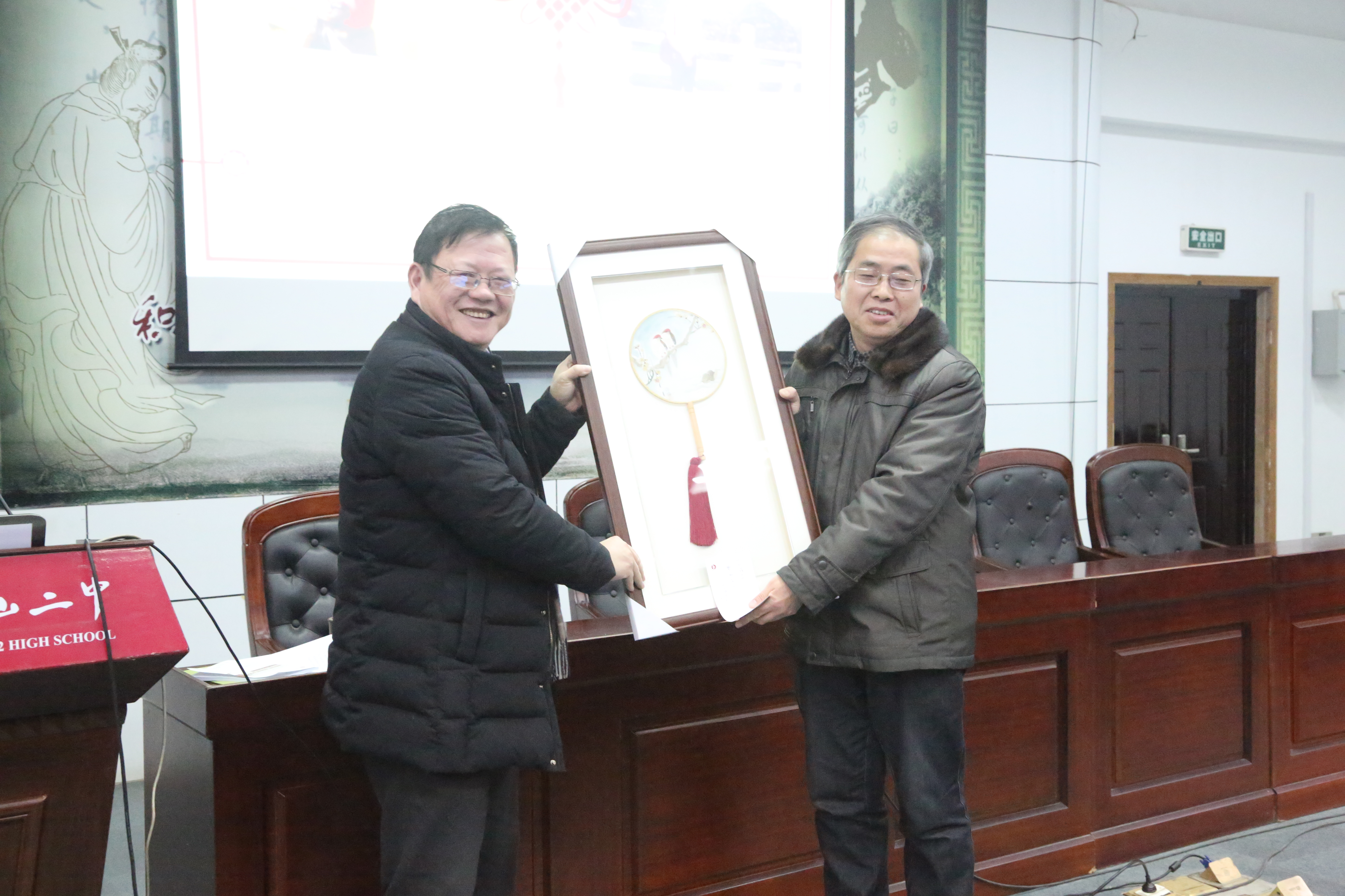 郭惠宇校(xiào)長首先回顧2018年學校的十件大事。十件(jiàn)大事中,有黨政工作的進展、有教育教學的成果、有校園硬件的完善(shàn)、還有學生活動的創新(xīn)。這(zhè)些大事中有(yǒu)可喜的變化,也有(yǒu)小小的遺憾。郭校長總結2018,展望2019,堅信二中會有更進一步(bù)的發(fā)展。然後感謝了全校教職工一年來在工作中的努力付出,祝福大家新春快樂。郭校長從許多兢兢業業的二(èr)中教師中挑出具有代表性的十位同誌,將(jiāng)我校學生創作的生肖版(bǎn)畫贈送(sòng)給他們,並合影留戀。最後郭(guō)校長指出(chū),作為教師,我(wǒ)們還應該提升教育理念,堅持不懈地提高自(zì)己的教學水(shuǐ)平。