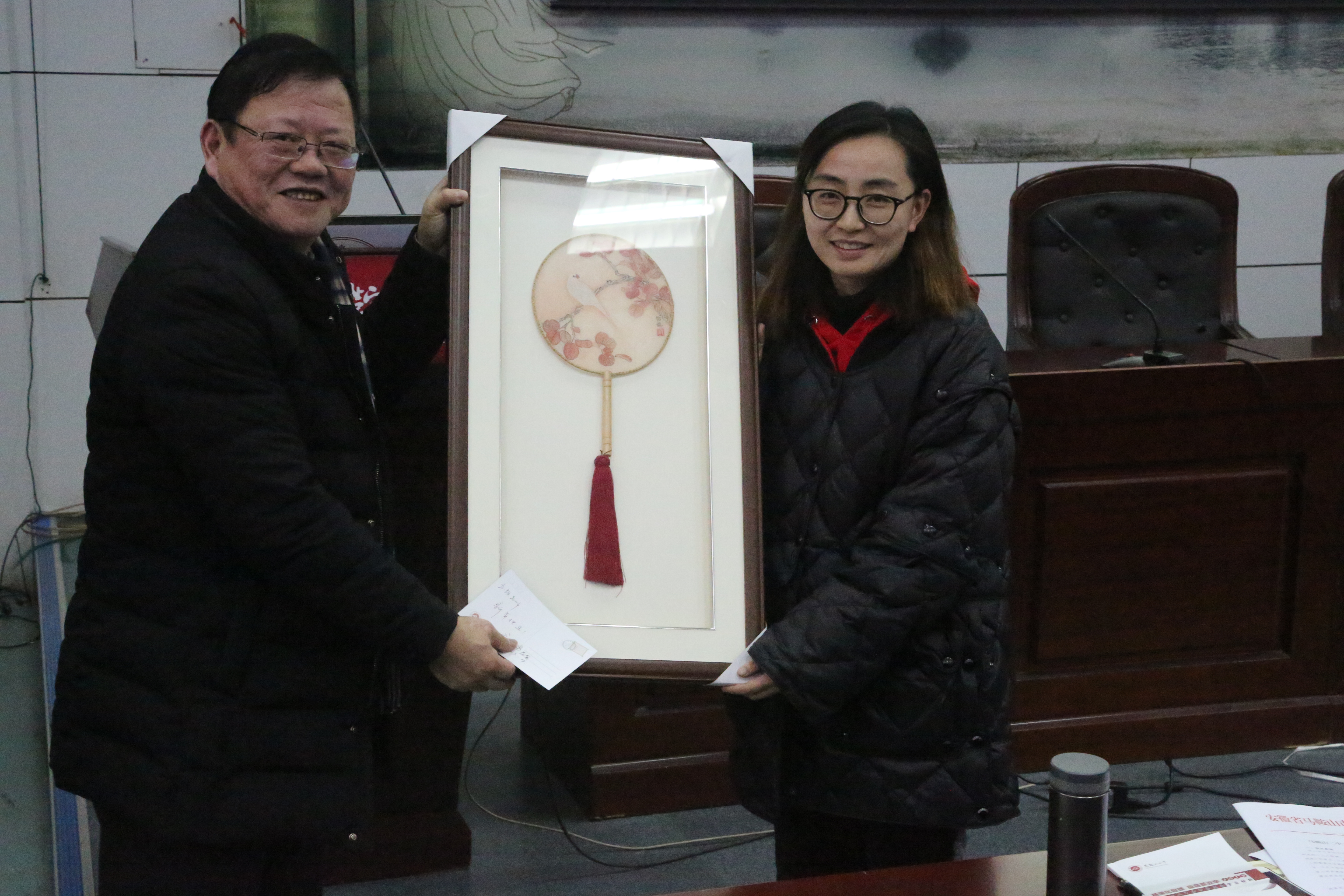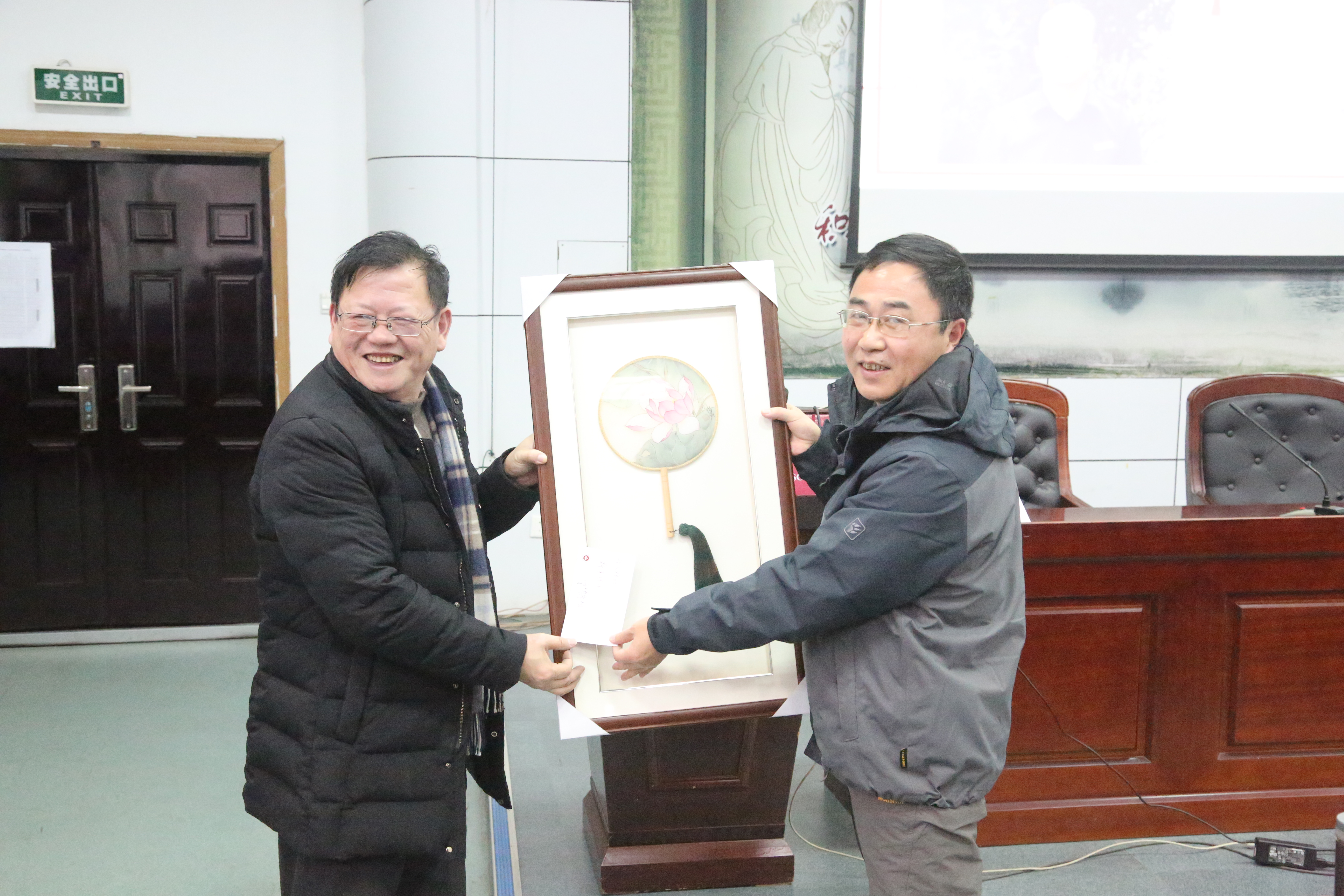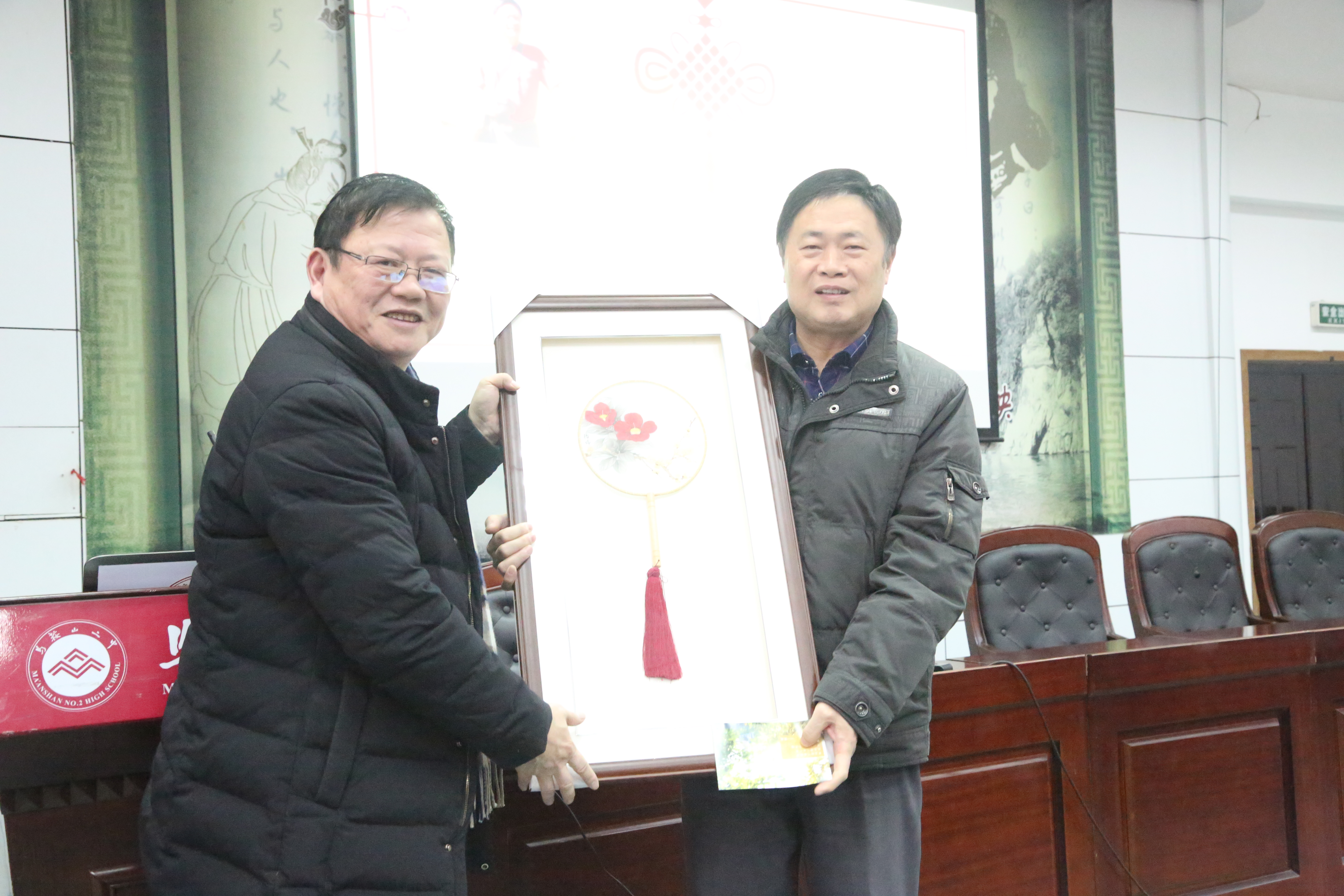 郭惠宇校(xiào)長首先回顧2018年學校的十件大事。十件(jiàn)大事中,有黨政工作的進展、有教育教學的成果、有校園硬件的完善(shàn)、還有學生活動的創新(xīn)。這(zhè)些大事中有(yǒu)可喜的變化,也有(yǒu)小小的遺憾。郭校長總結2018,展望2019,堅信二中會有更進一步(bù)的發(fā)展。然後感謝了全校教職工一年來在工作中的努力付出,祝福大家新春快樂。郭校長從許多兢兢業業的二(èr)中教師中挑出具有代表性的十位同誌,將(jiāng)我校學生創作的生肖版(bǎn)畫贈送(sòng)給他們,並合影留戀。最後郭(guō)校長指出(chū),作為教師,我(wǒ)們還應該提升教育理念,堅持不懈地提高自(zì)己的教學水(shuǐ)平。