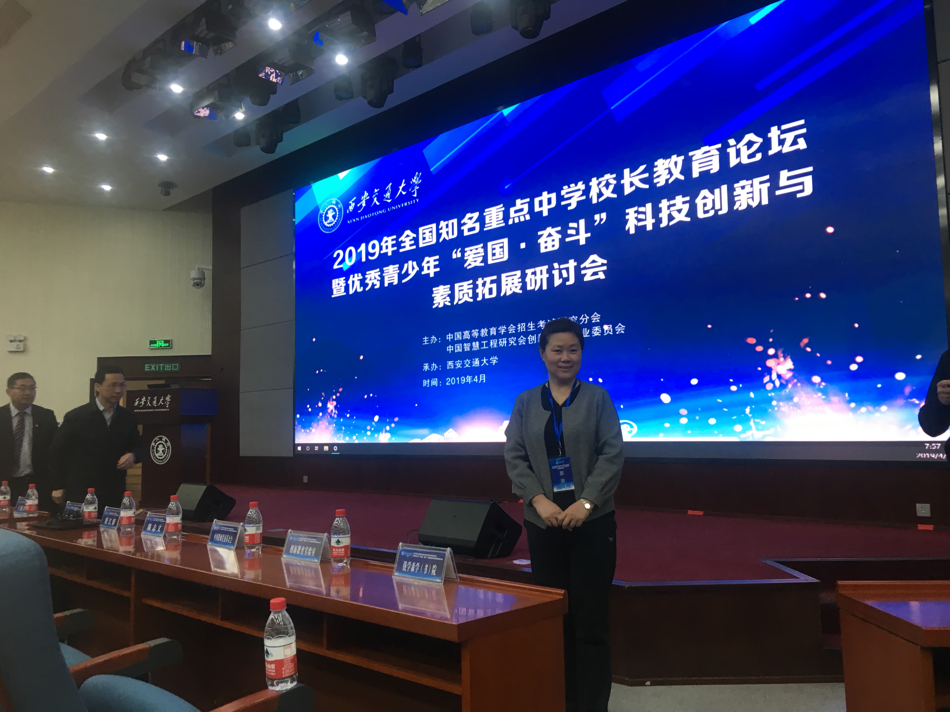 4月3日(rì),2019年全國知名重(chóng)點中學(xué)校長教育論壇暨優秀青少年“愛國·奮鬥”科(kē)技創新與素質(zhì)拓展(zhǎn)研(yán)討會在西安交通大學舉行。我校聶曉霞書記應邀出席本次論壇。