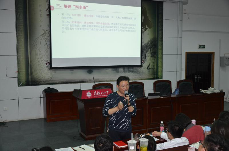 4月19日晚上7點,馬鞍山二中二樓(lóu)報告廳座無虛(xū)席,全體高三文科學生參加的一(yī)場(chǎng)學習報告講座正式開始。今晚的主講是正高級安徽省特級教師,馬鞍山市名師工作室主持人,馬鞍(ān)山第二中學教(jiāo)科處主任伍玉魁老師。