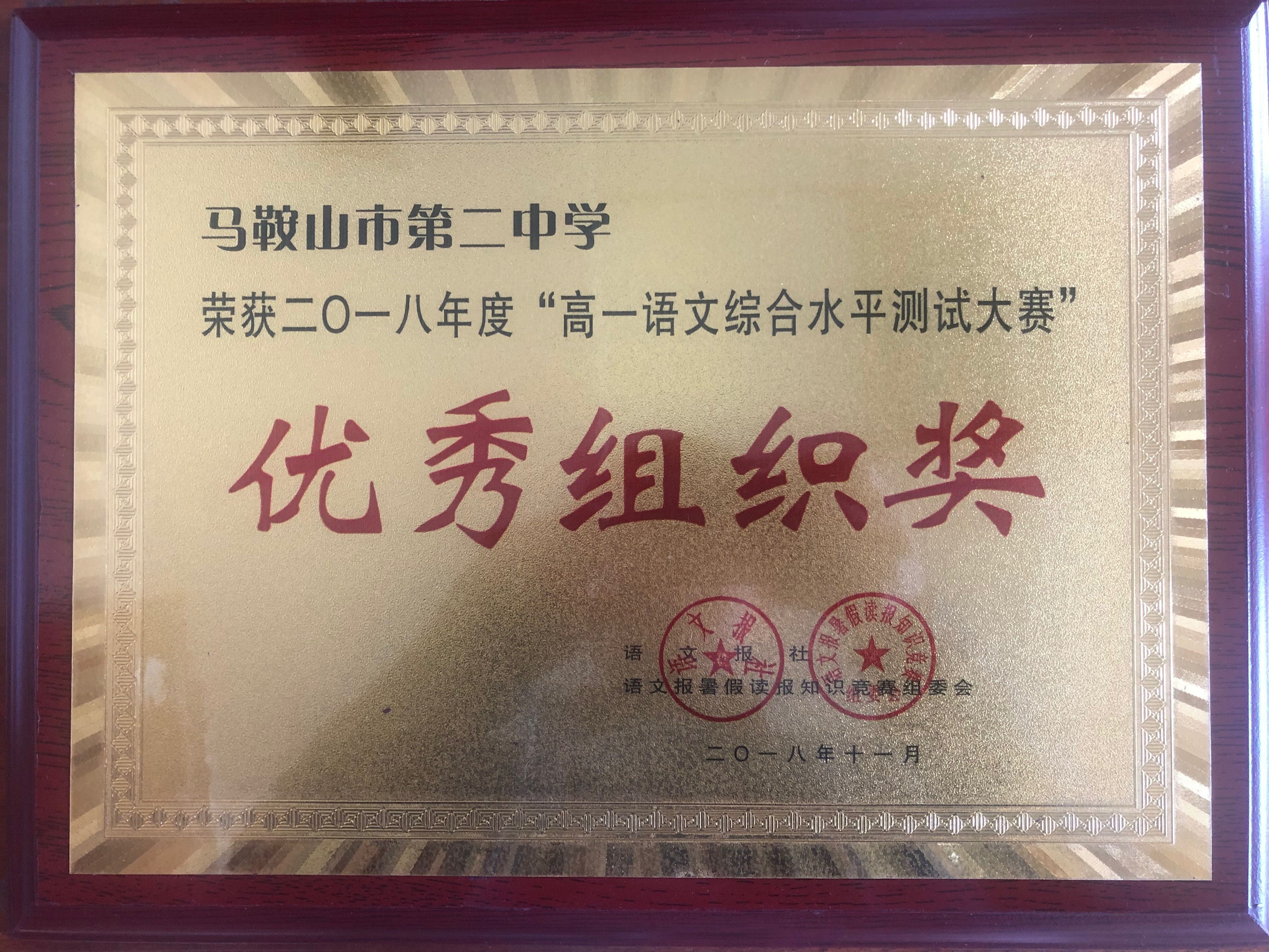 我校學子在《語文(wén)報》暑期舉辦的“高一語文綜合水平測試大賽”中共有50名同學榮獲一、二等獎。另有(yǒu)劉俁同學獲得特等獎。為此,《語文(wén)報》報社特授予馬(mǎ)鞍山二中優秀組織獎獎牌。
