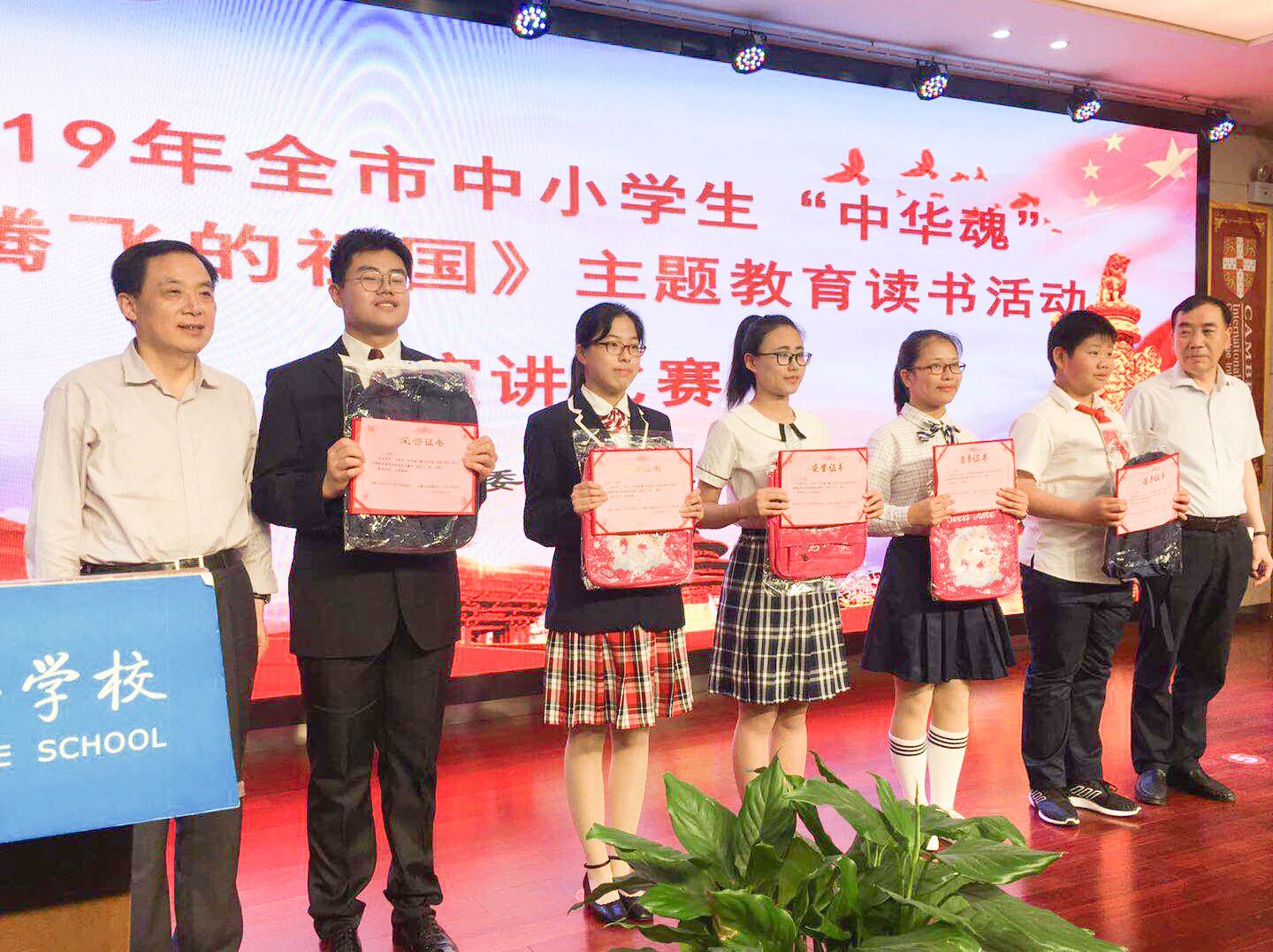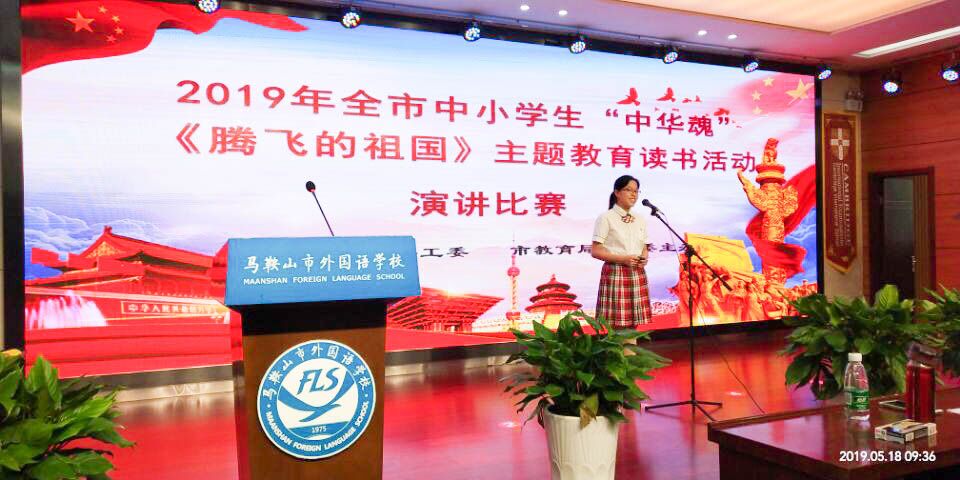2019年5月18日,全市(shì)“中華魂”《騰飛的祖國(guó)》主題教育讀書活動演講比賽在市外國語學校多功能(néng)報告廳舉行。我校高二(3)班陳姝硯同學代表學校參賽並榮獲一等獎。