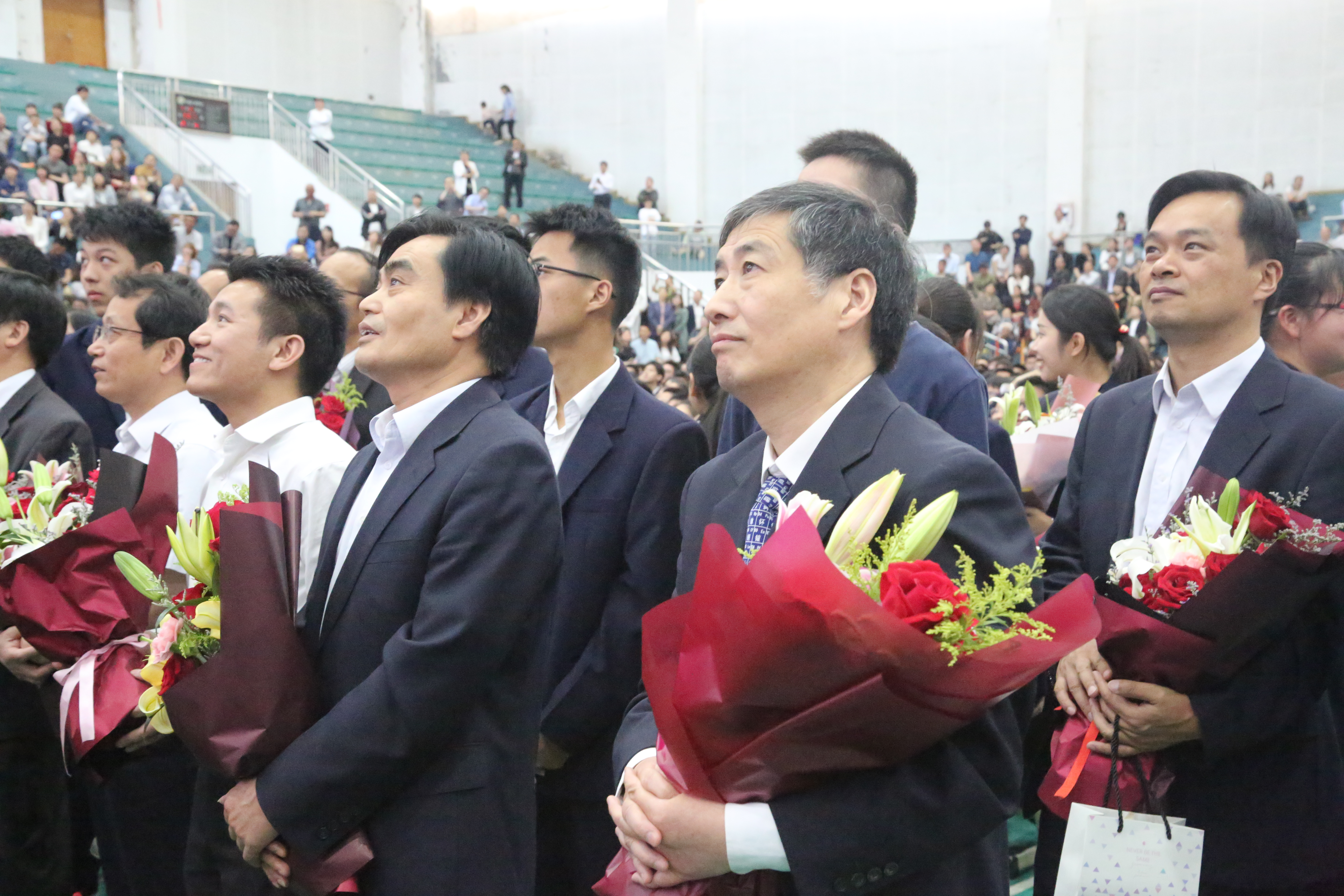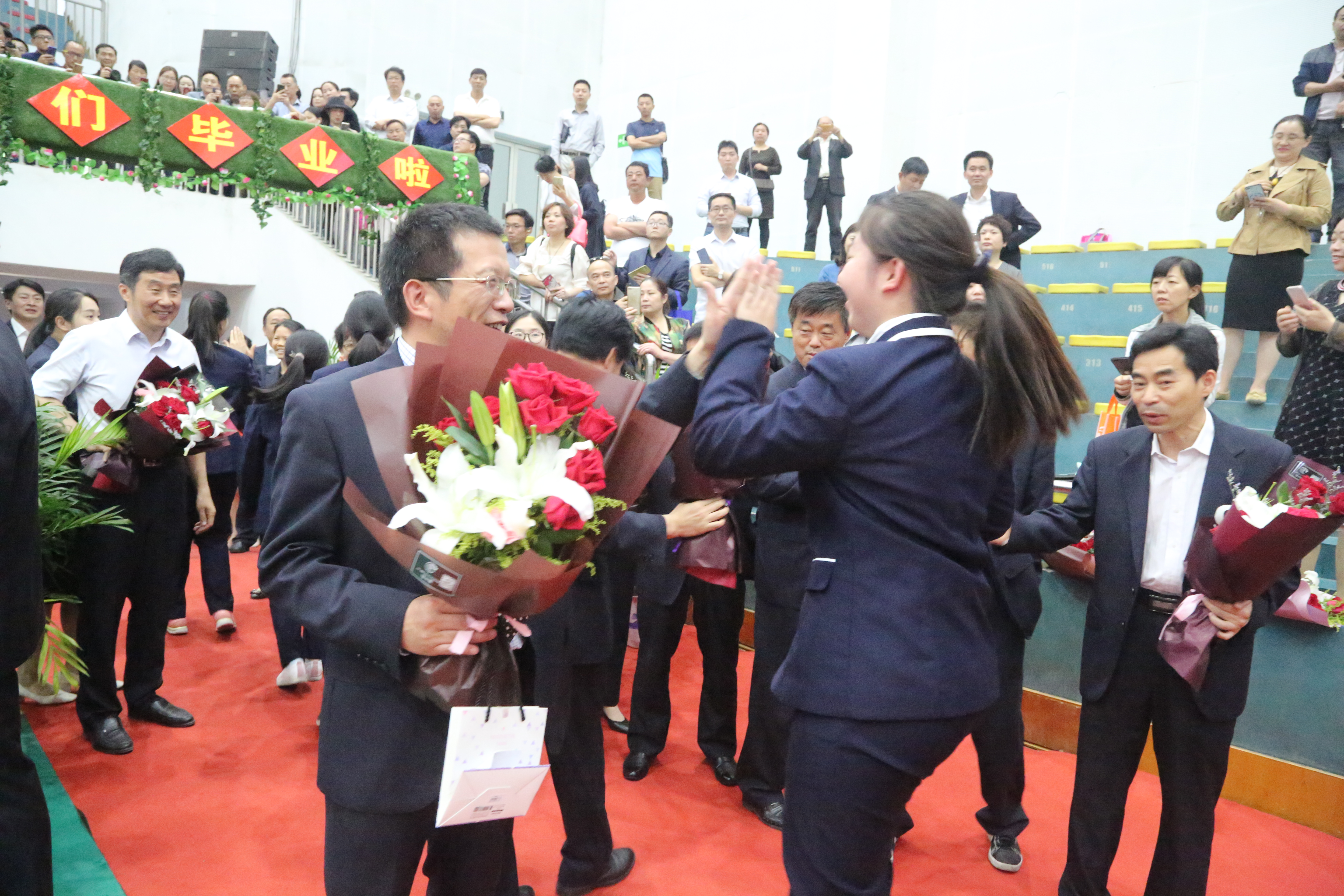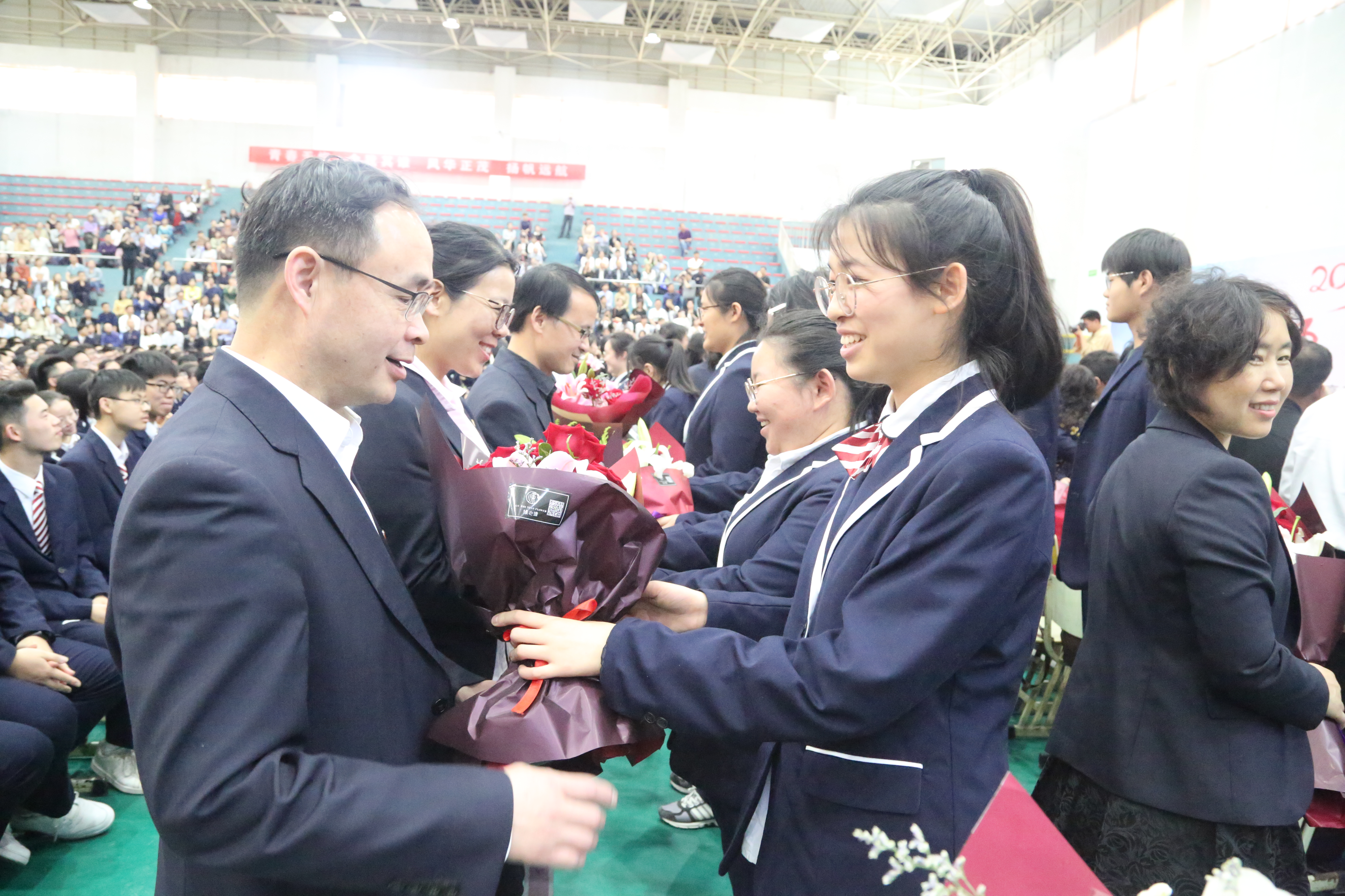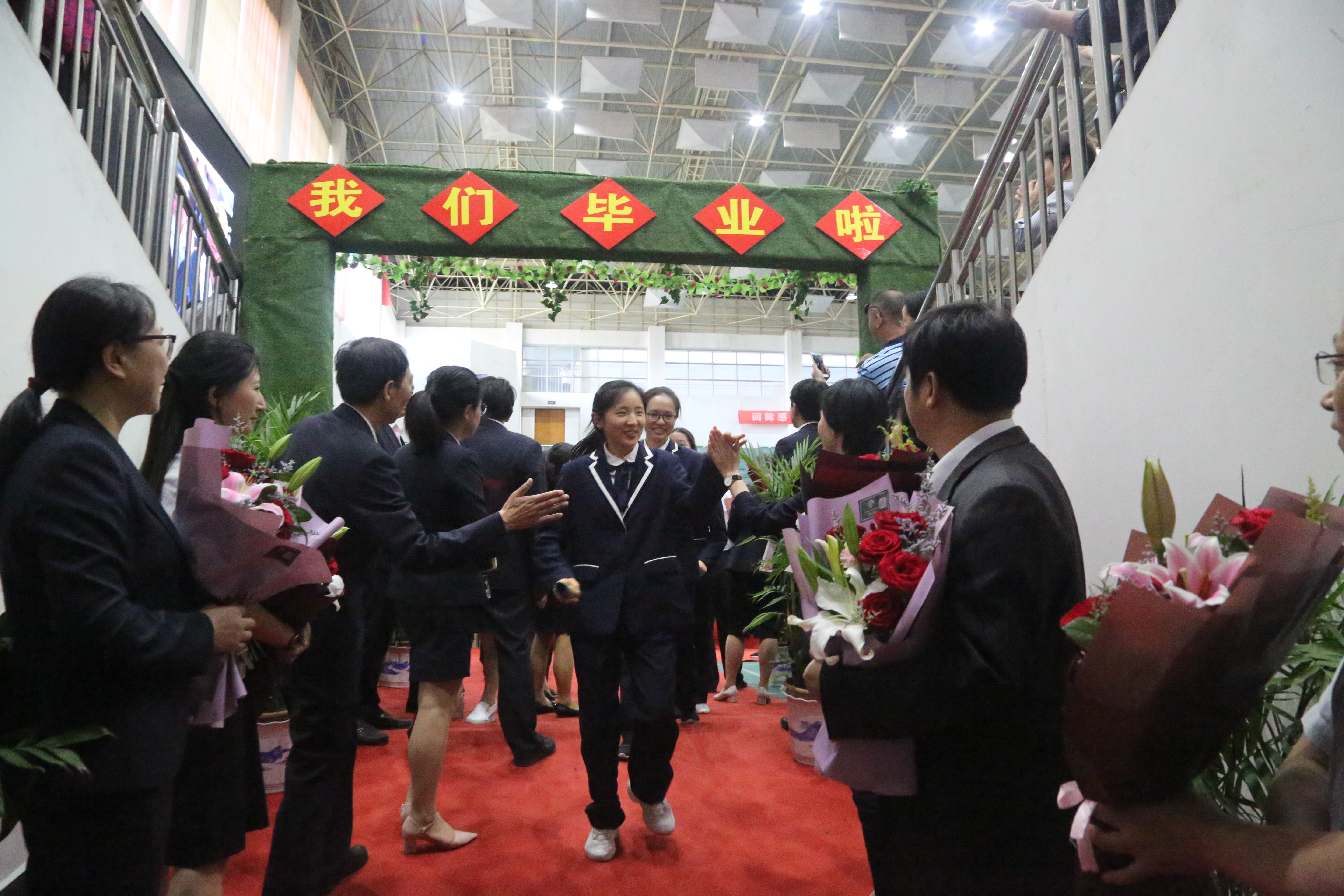 最後,1022名學生一一上台,從校領導的手中接過象征畢業的紀念(niàn)禮,再排隊與手捧鮮花(huā)的老師一一擊掌,穿過“畢業(yè)之門”,告(gào)別18歲的青春,也揮手(shǒu)迎來一個嶄新的人生。