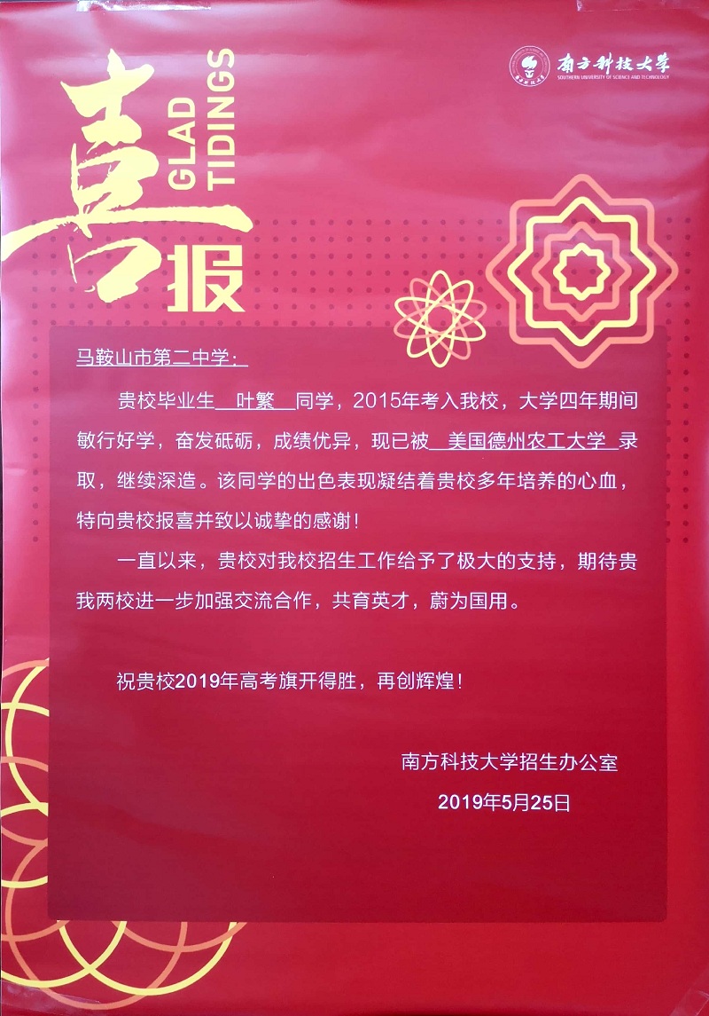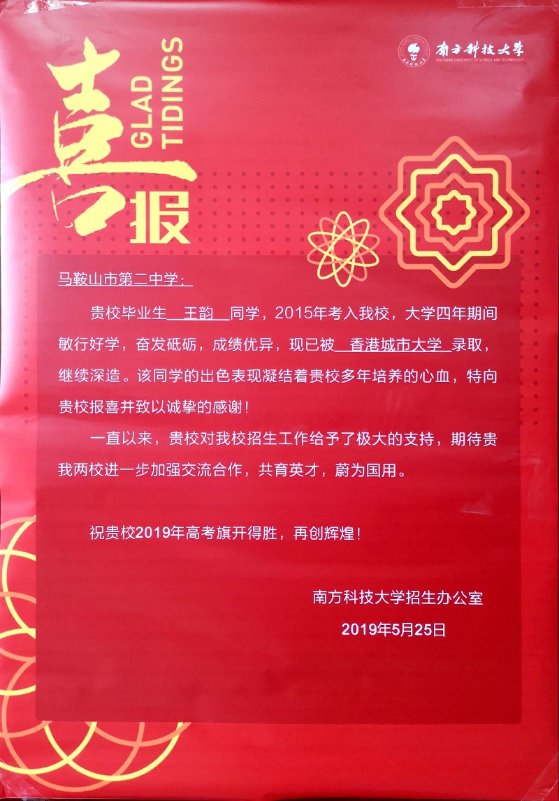 南方科技大學喜報