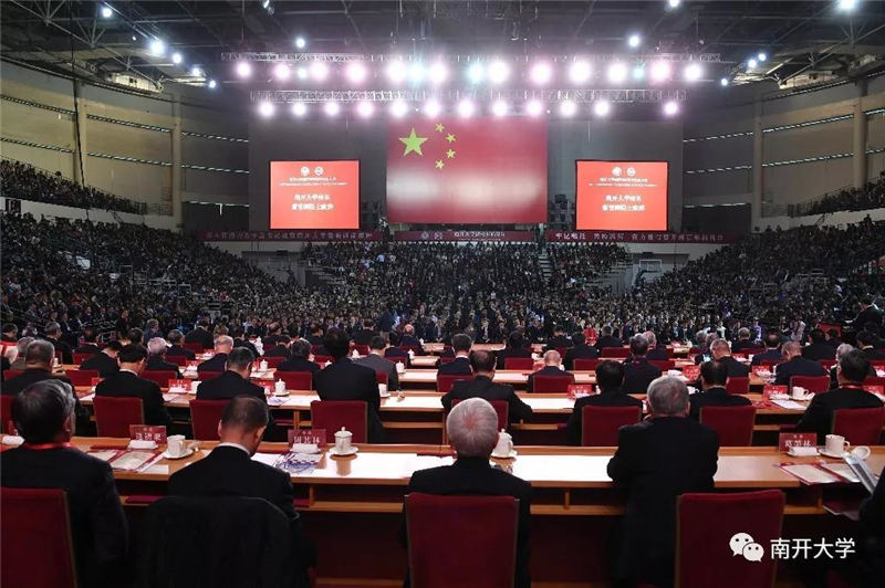 愛國奮鬥百年輝煌,公能日新再踏征程。當南開校歌響起,在場嘉賓和師(shī)生校(xiào)友全體起立,齊聲高唱,共同祝願百年南開大學永遠年青。