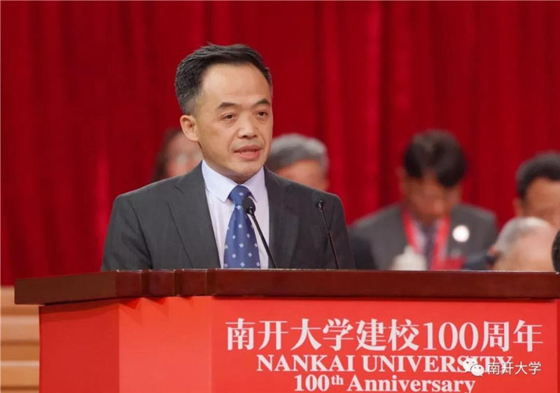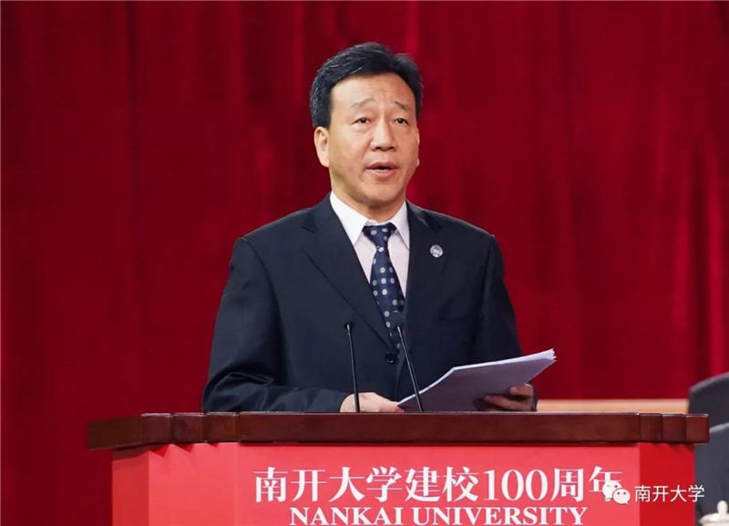 天津市委書記李鴻忠代表(biǎo)天津市委、市政府向南開(kāi)大學百年校慶表(biǎo)示熱烈祝賀。