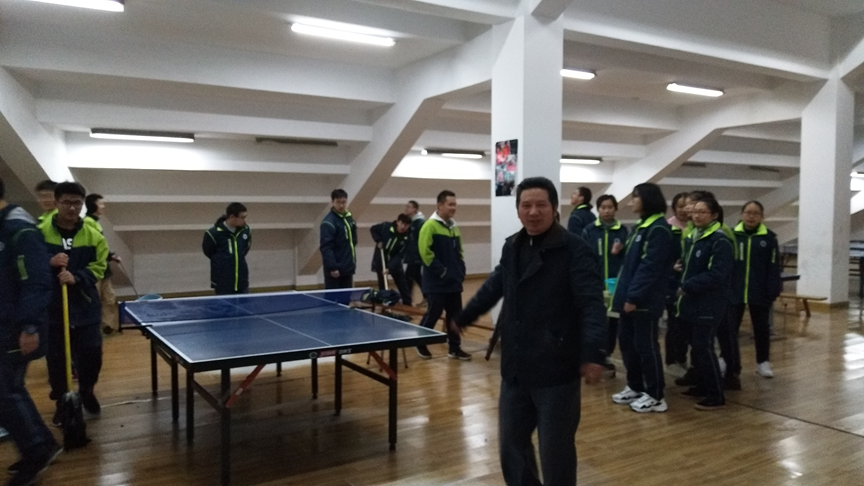 12月2日,周一,二中所有班級的班會課如往常一樣正常(cháng)進行,通常非常熱鬧的體育場館(guǎn)也變得如此安靜,就在這時,高二(6)班的所有同學在(zài)施德東老師的帶領下(xià)穿過諾貝爾橋,排(pái)著整齊的隊伍,男同(tóng)學(xué)扛著拖把,拿著掃帚、簸箕,女同學拿著麵盆、抹布來到了體育館乒乓球教室,在施德東老師(shī)的指揮下,同學們掃地的掃地,打水的打水,擦窗戶、擦桌子,掃地,拖地,忙的不亦(yì)樂乎。不一會兒髒亂的乒(pīng)乓球教室被同學們打掃的幹幹淨淨。最後慶曉副校長(zhǎng)對同學們的表現給予了表揚和肯定。