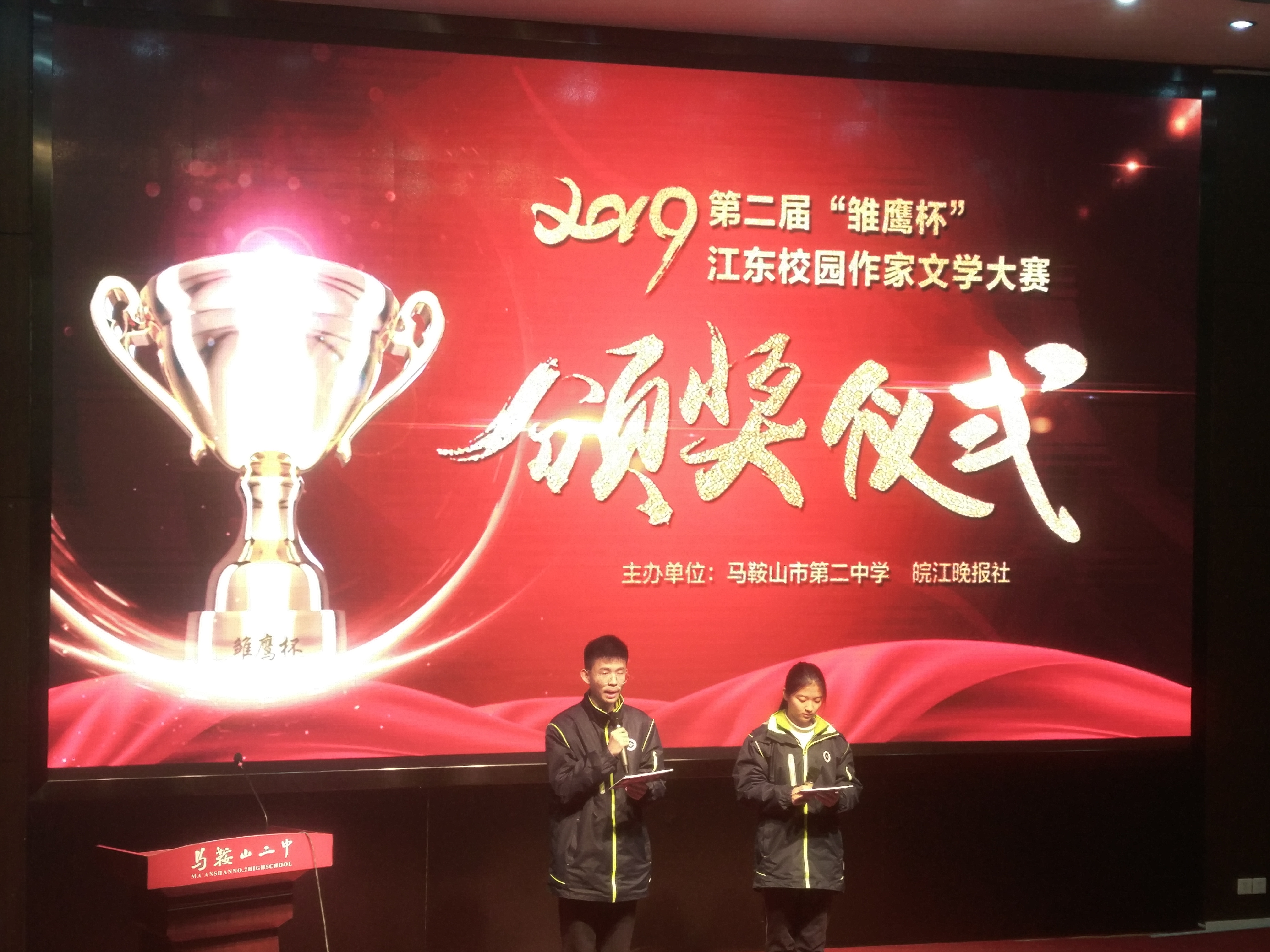 12月29日上午,由馬鞍山二中與《皖江晚報》聯合主辦的2019第二屆“雛鷹杯”江東校園作家文學大賽頒獎儀式(shì)在二中舉行。經過(guò)大賽組委會的初評、複(fù)評與終評(píng),馬鞍山二中侯佳琦的《又抱一山詩》、市紅星中學季青的《予吾所愛,情重山海》、含山一中穀勝磊的《畫眉(méi)成雙,比肩天荒》獲得一等獎(jiǎng)。大賽(sài)還評選出了(le)二等獎作品5個,三等獎作(zuò)品12個。