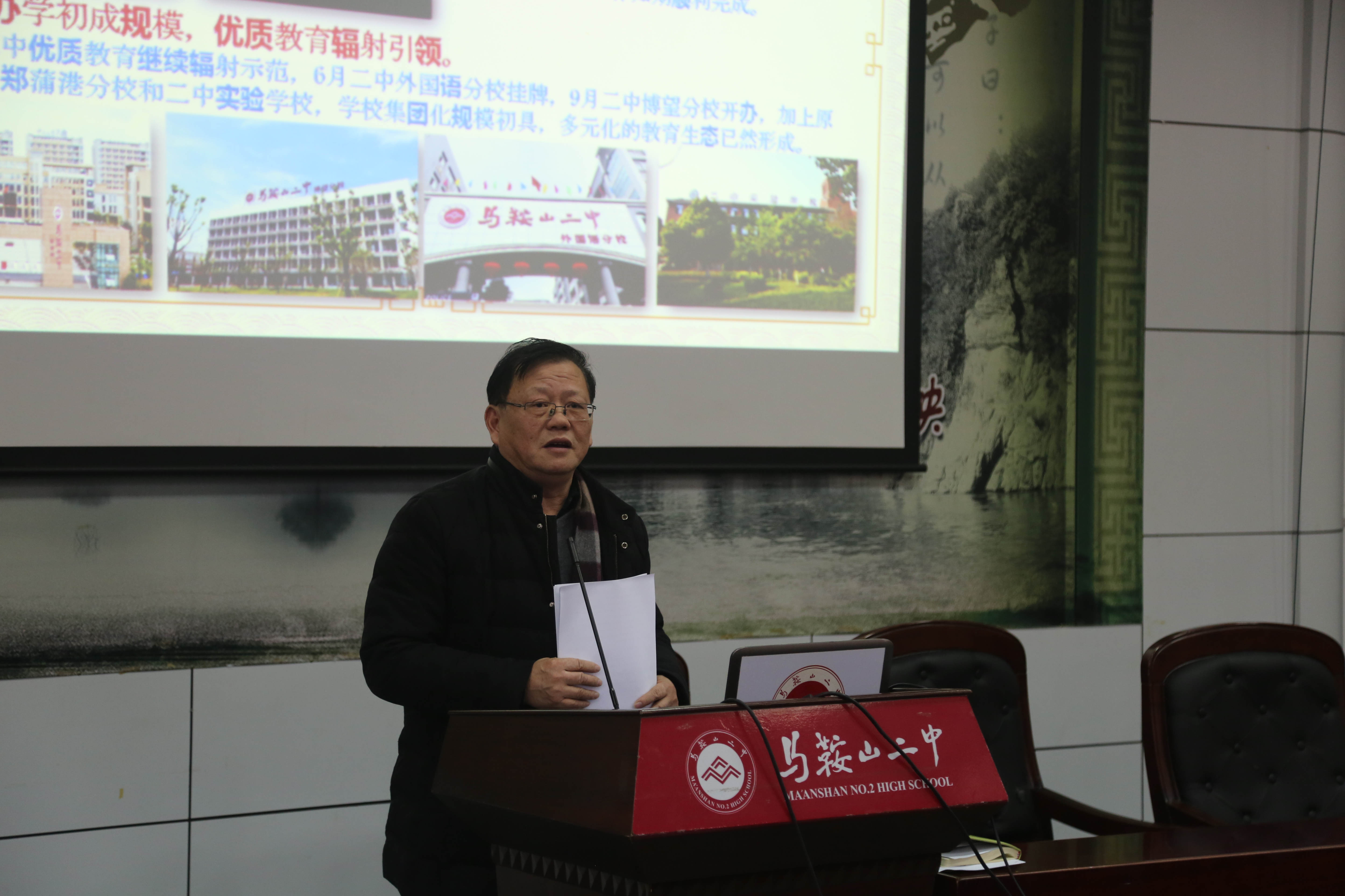1月15日下午兩(liǎng)點,馬鞍山(shān)二中在二樓報告廳召(zhào)開2019年度期末工作總結會議,會議(yì)由辦公室主任魯峻主持,校長郭惠宇作主(zhǔ)題報告,全校教職工全員參與。